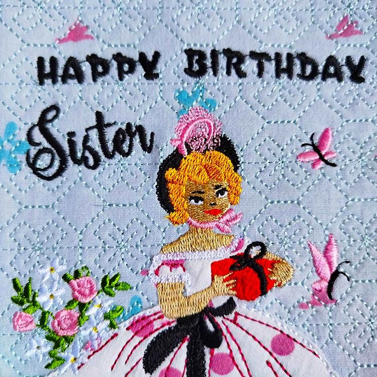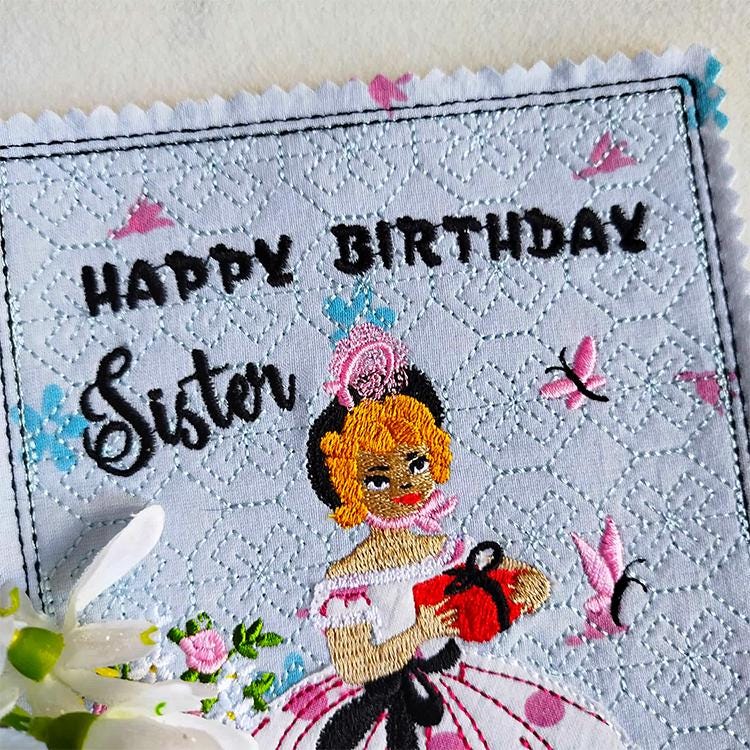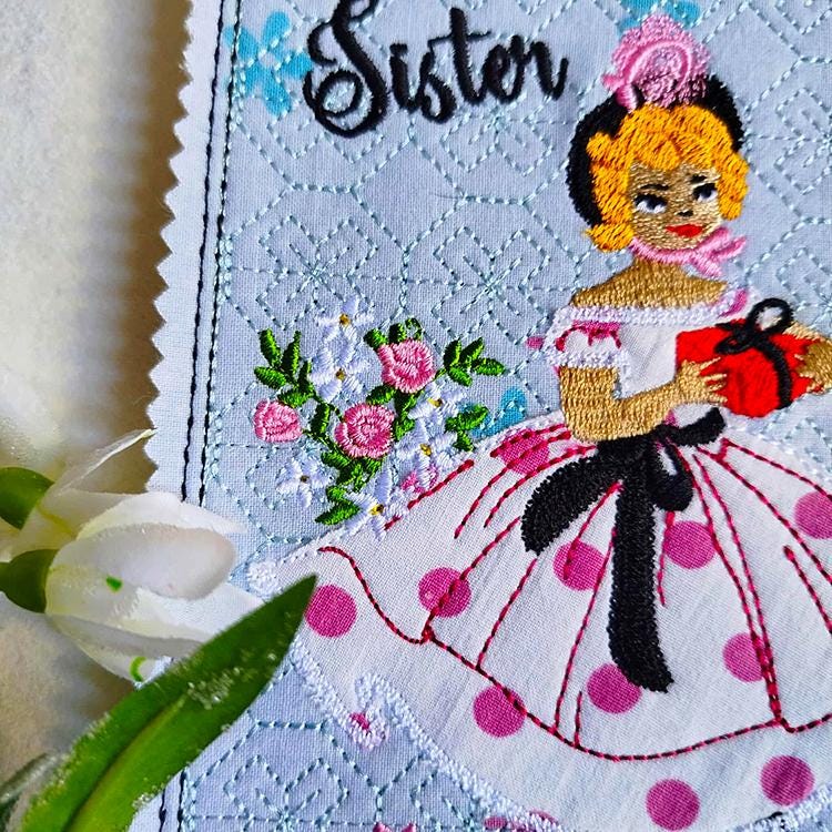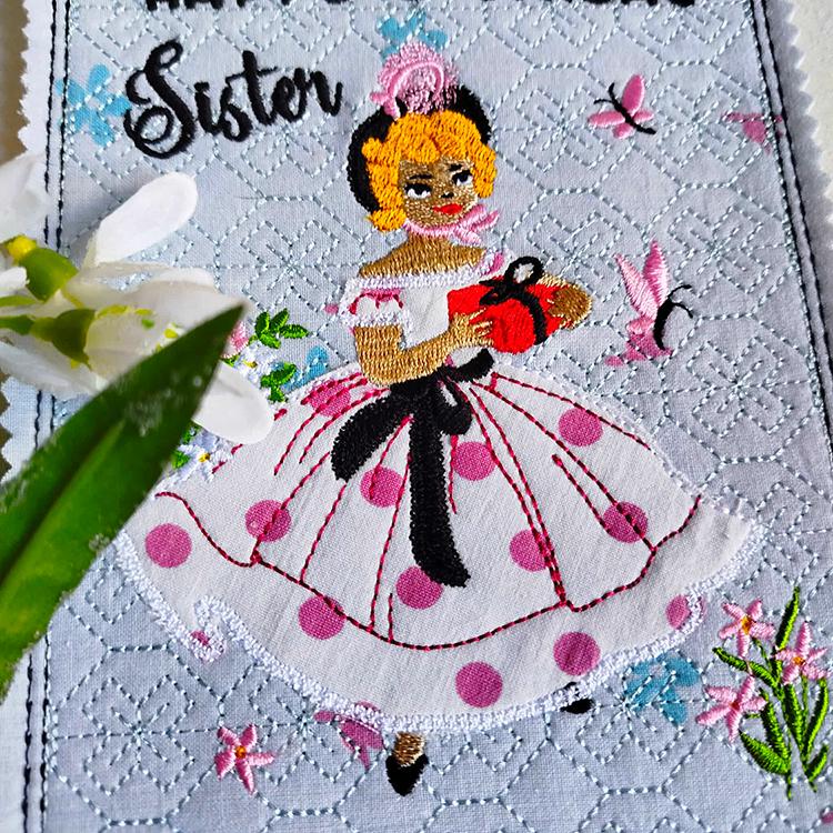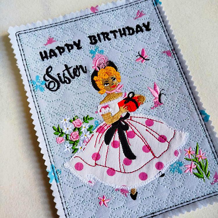 Sweet vintage card for sisters - made completely in the hoop.