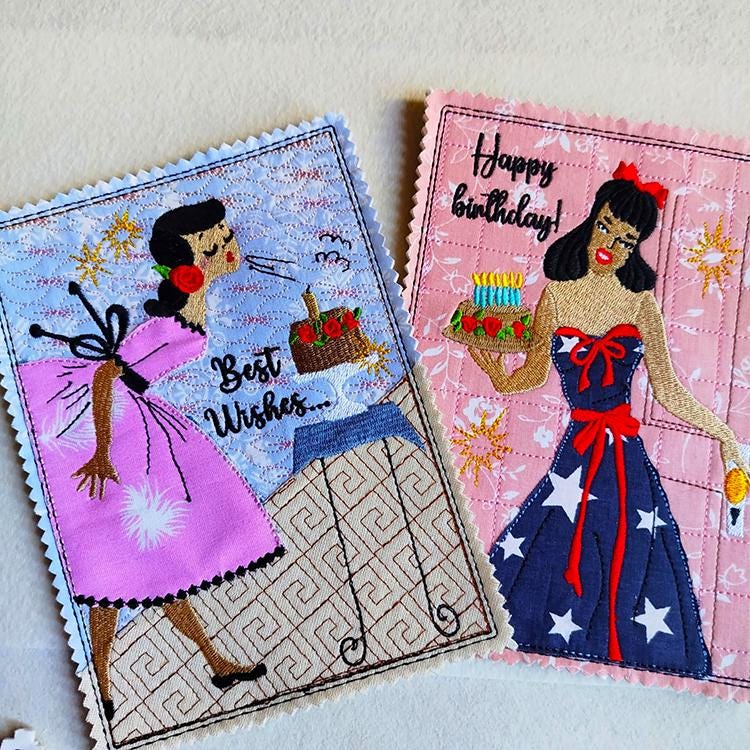 Each card has the applique detail on clothes and you can make it look different and even more special with your fabric and thread colors.