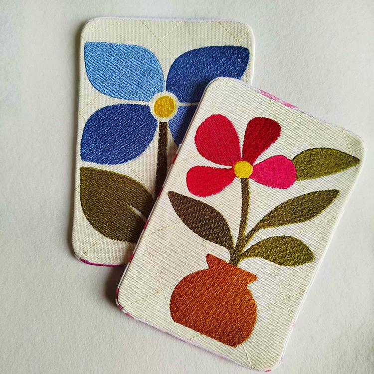 Beautiful pocket back floral mugrugs - made completely in the hoop.