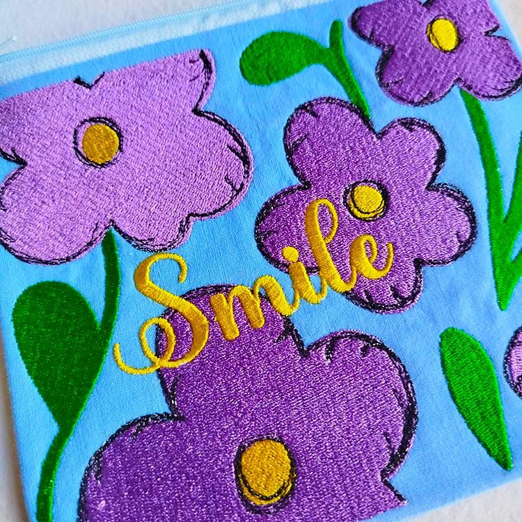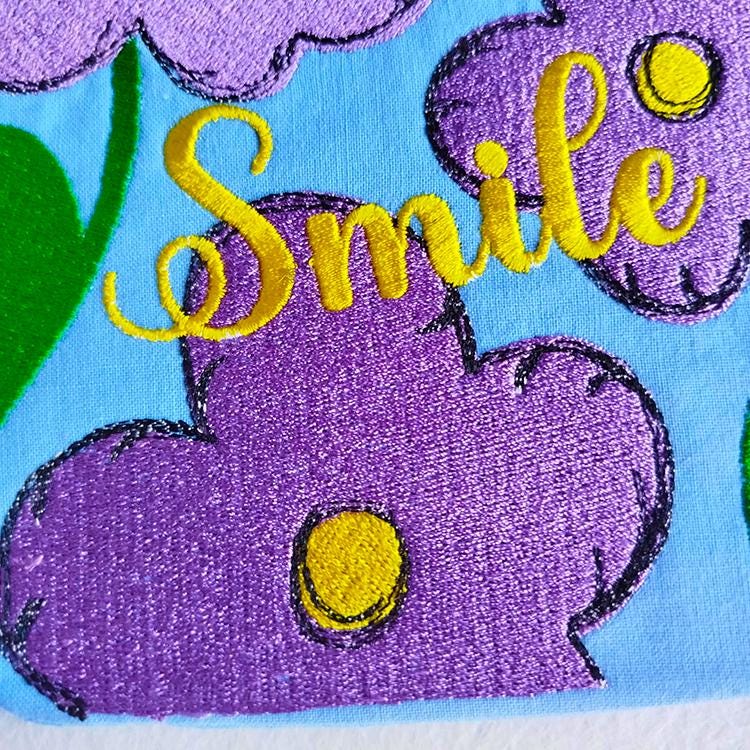 Floral fully lined purse with the inspirational message - made in the hoop with a little handsewing inclusion.