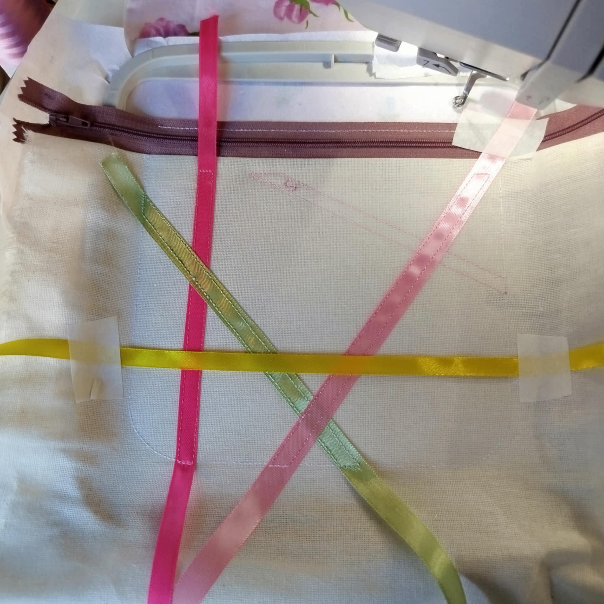 To stitch this purse you need 0,5in width ribbons for it, 5 pieces of such ribbons (9inches in length each piece).