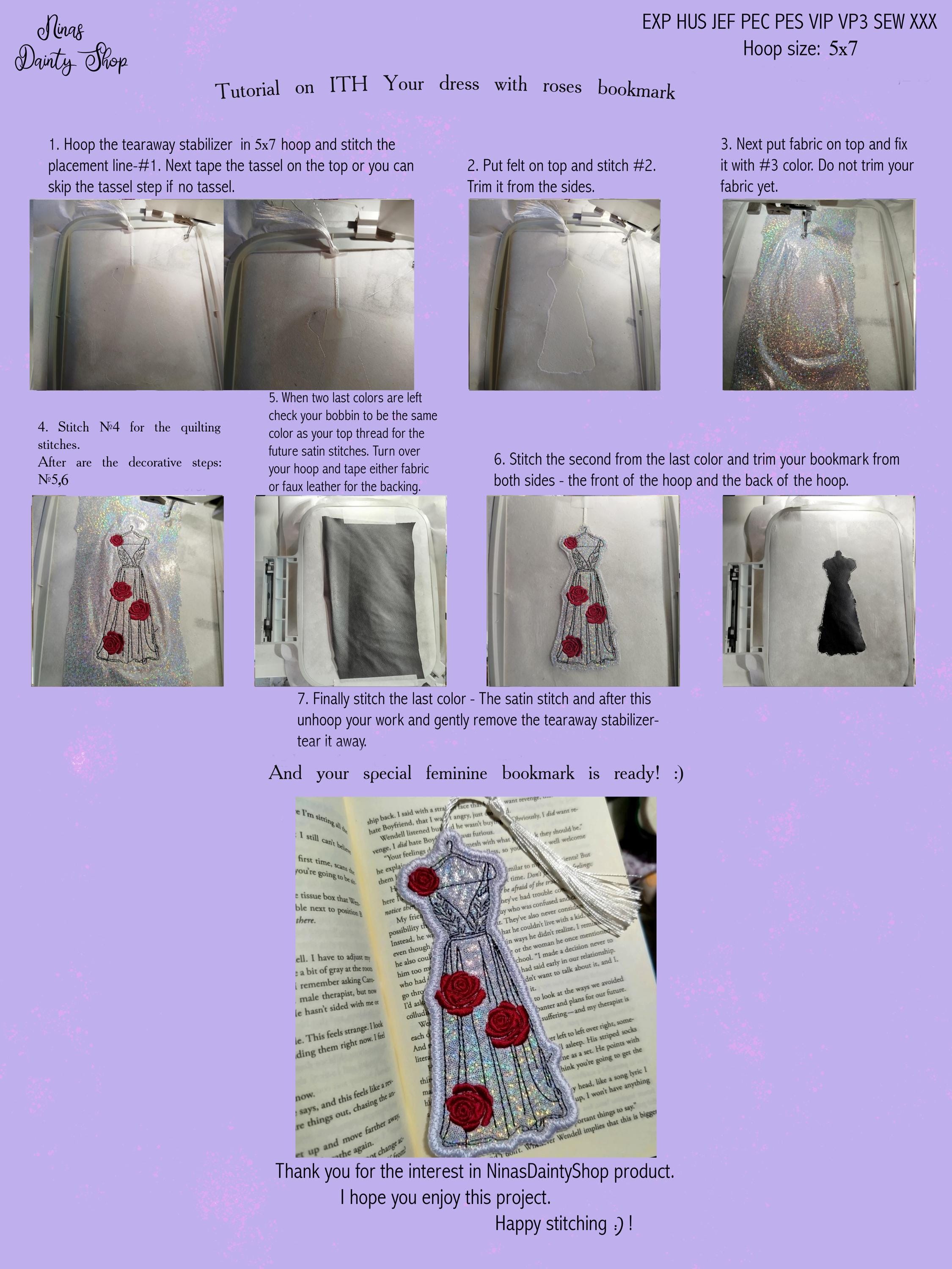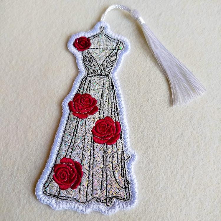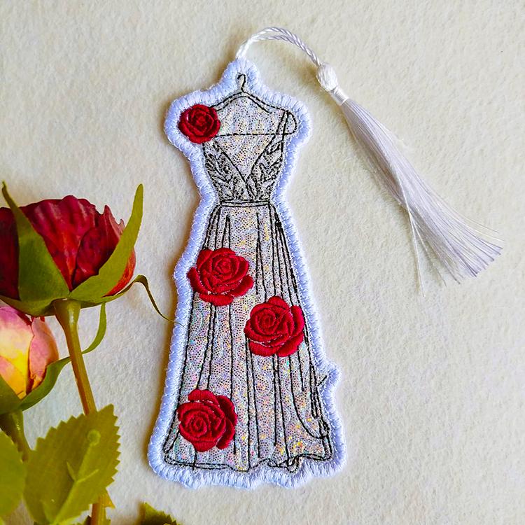 Beautiful and feminine bookmark that is made completely in the hoop.