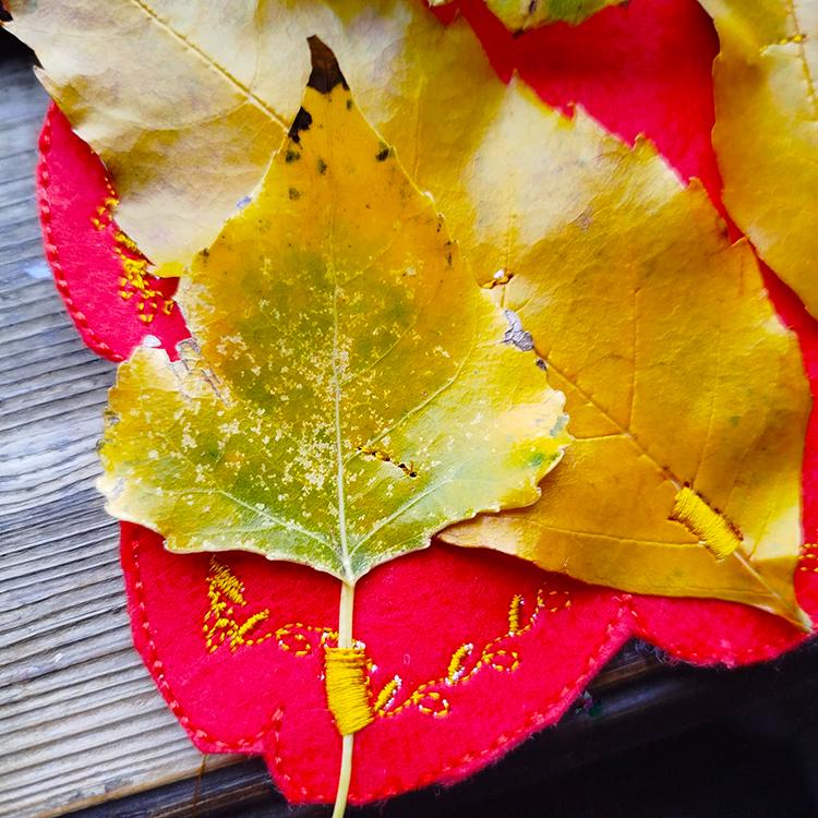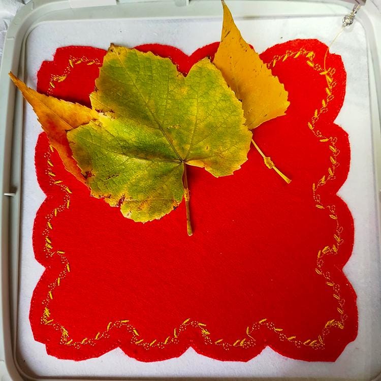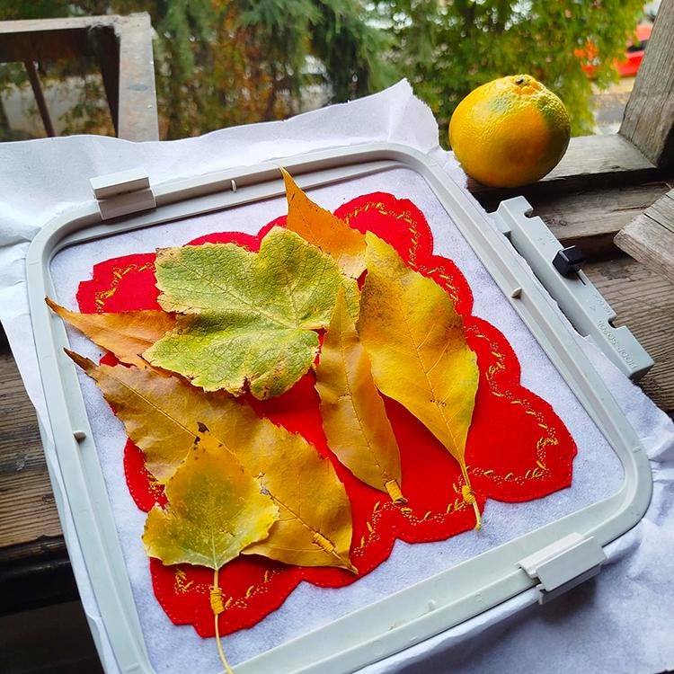 Fall leaves project that is possible to do only in autumn, completely in the hoop and enjoy it on your wall after.