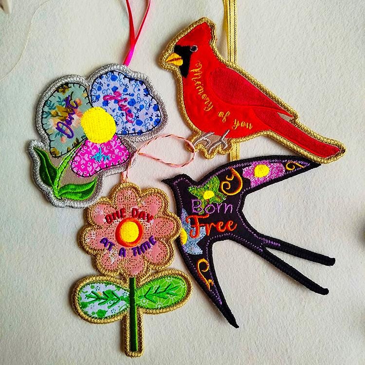 Beautiful inspirational four designs of the ornaments - made completely in the hoop.