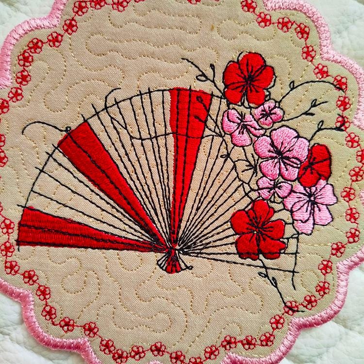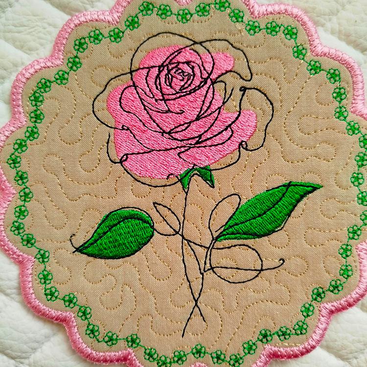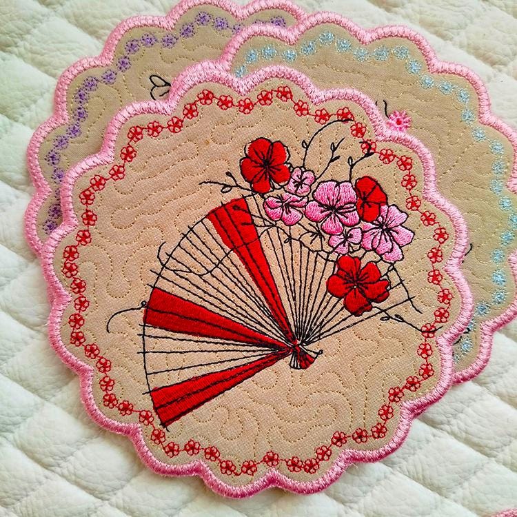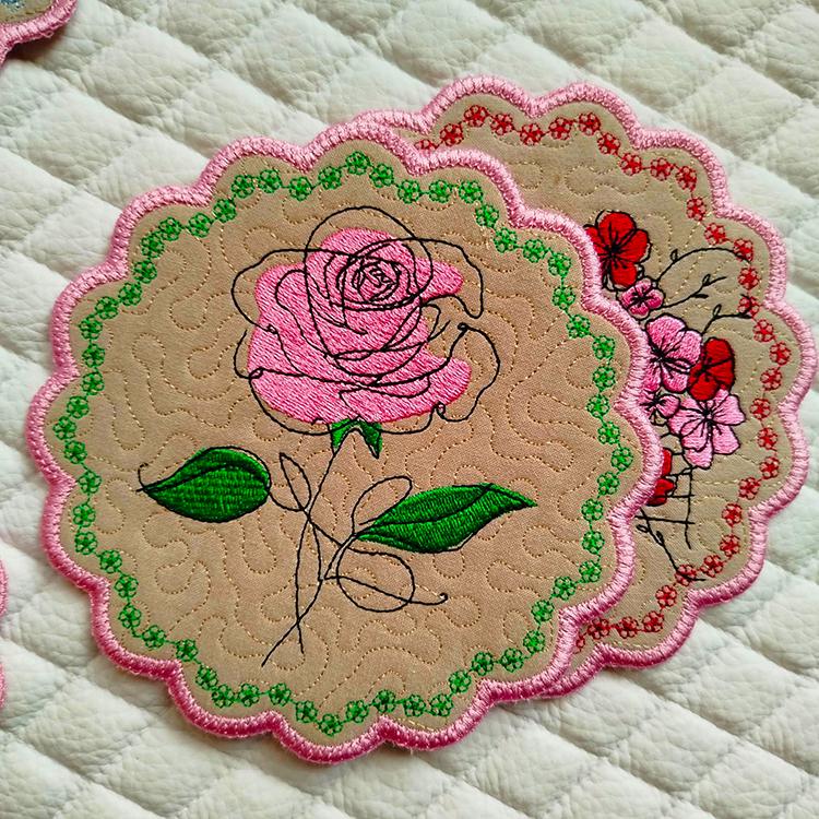 The set of four coasters designs - done completely in the hoop.