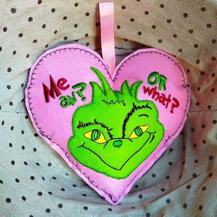 Christmas Oh, so mean ornament - made in the hoop with a little handsewing inclusion.