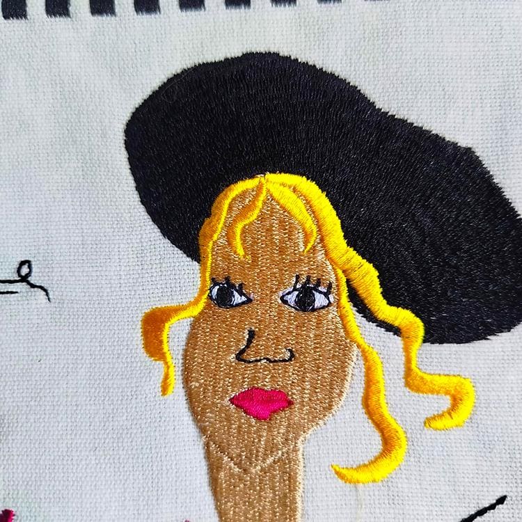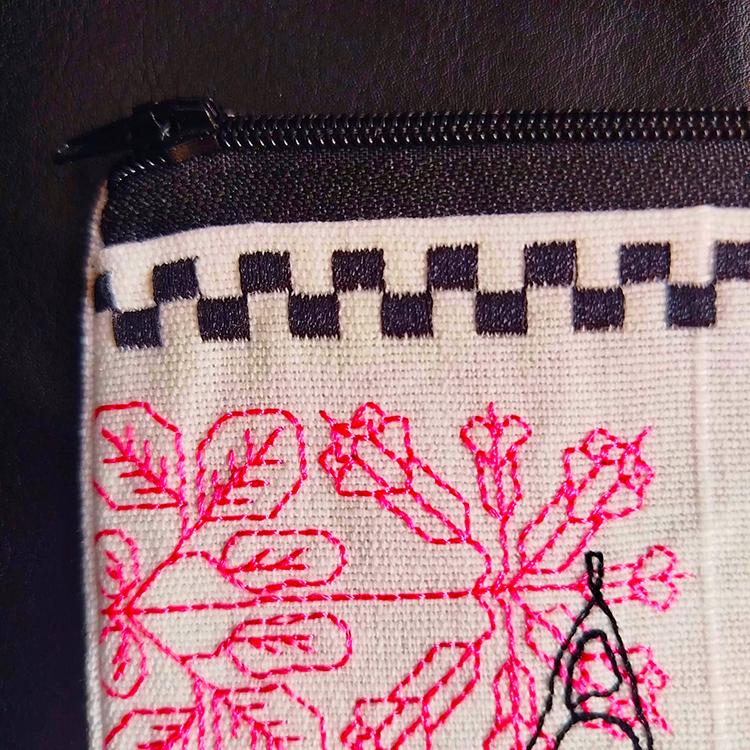 Handdrawn Parisian lady fully lined purse - stitched in the hoop with a little handsewing inclusion.