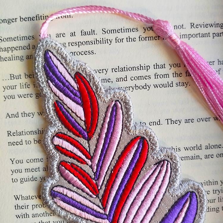 Leaf pretty bookmark - made completely in the hoop.