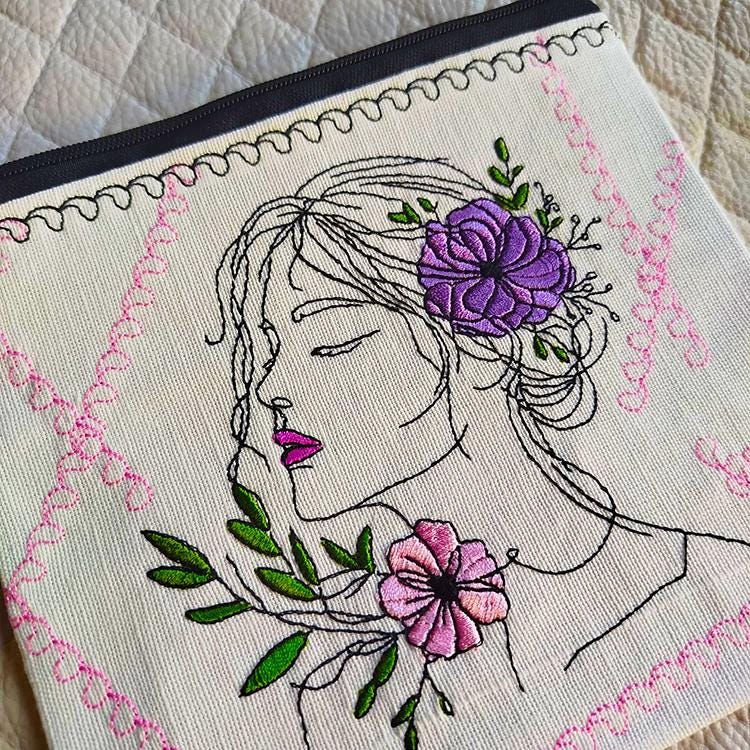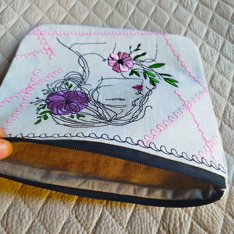 Fully lined floral lady purse that is made in the hoop with a little handsewing inclusion.
