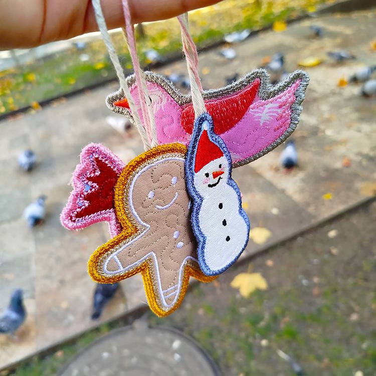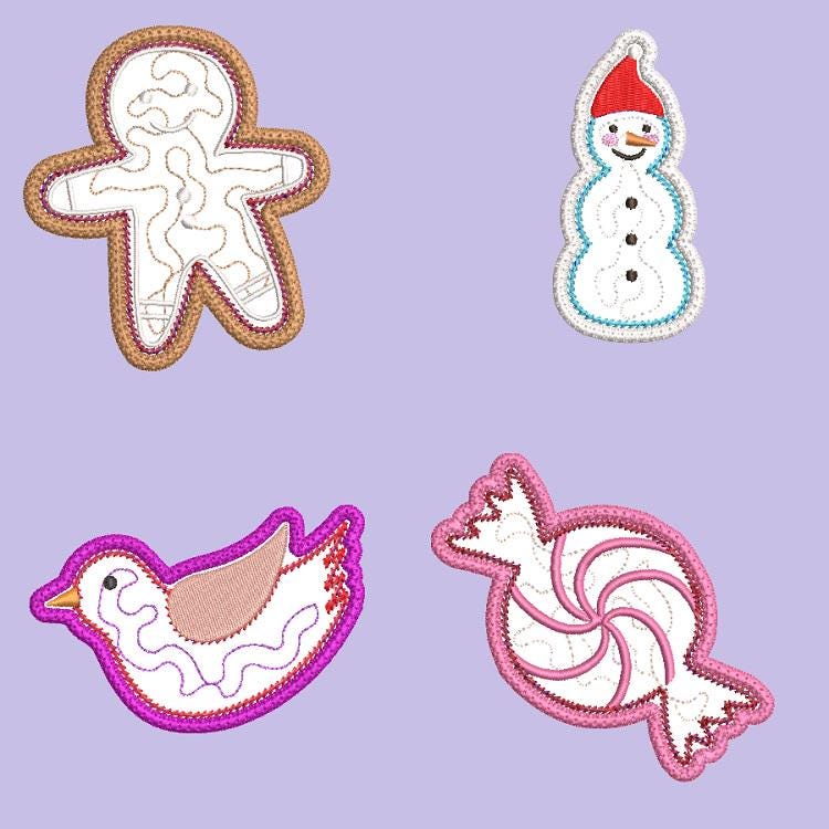 Four designs of the Christmas ornaments - made completely in the hoop.
