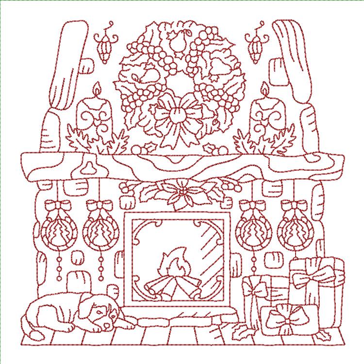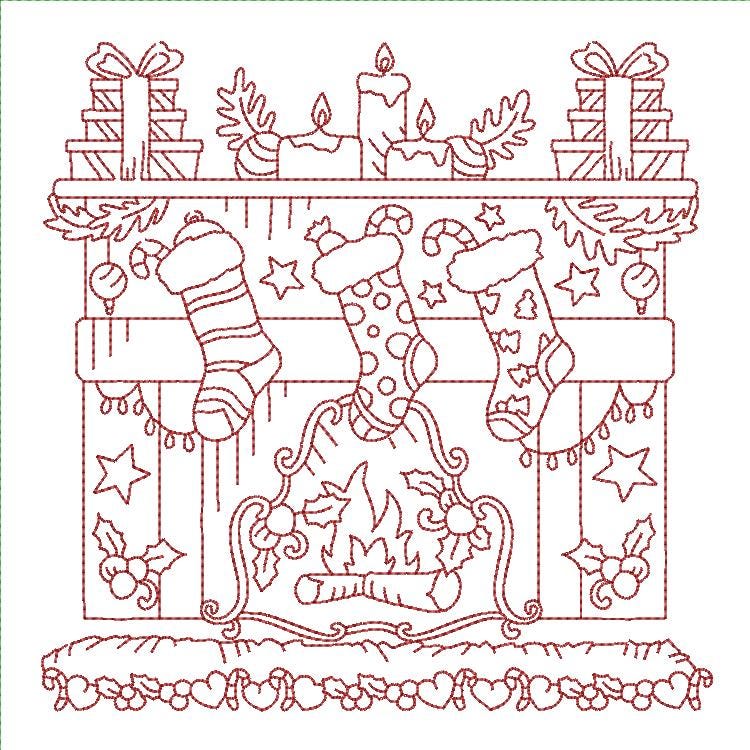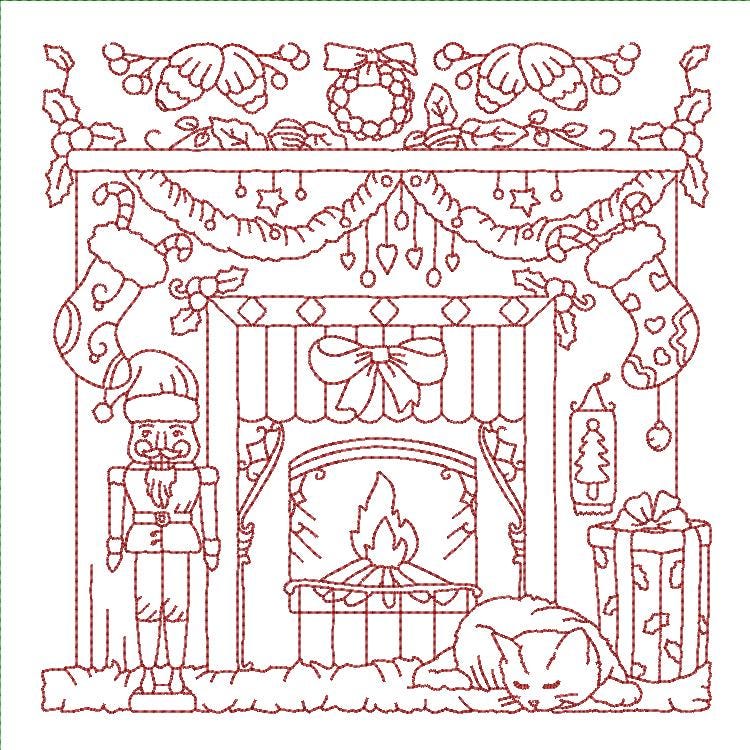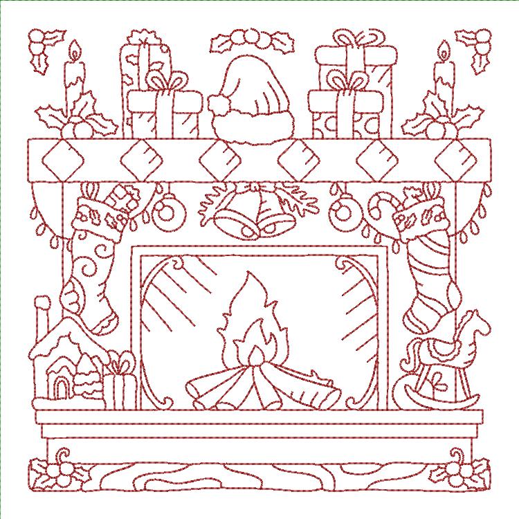 Vintage Christmas fireplaces blocks for your quilt or runner or other projects.
