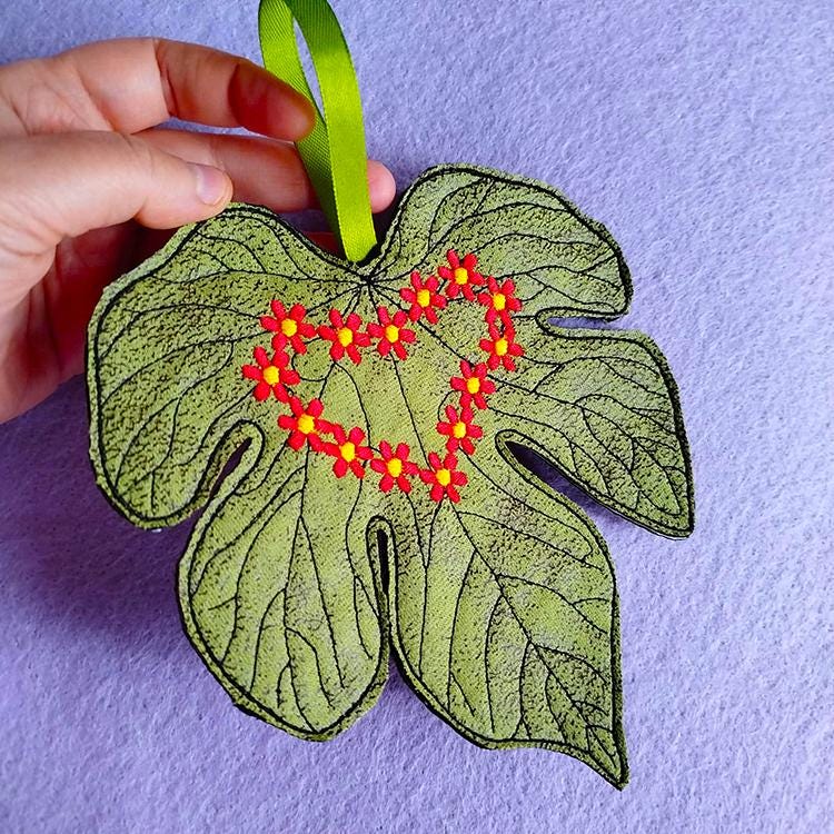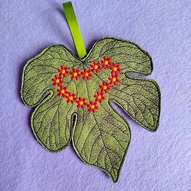 Beautiful and big leaf felt ornament - stitched completely in the hoop.