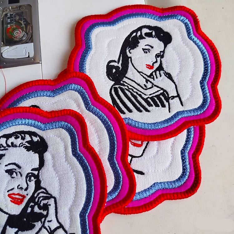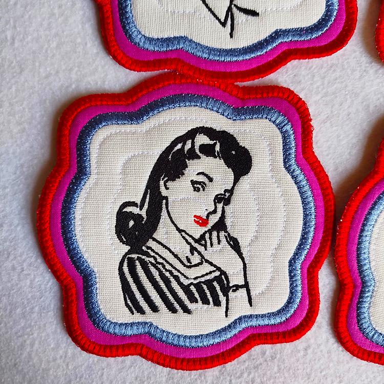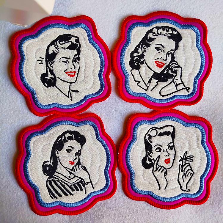 Vintage ladies coasters - made completely in the hoop.