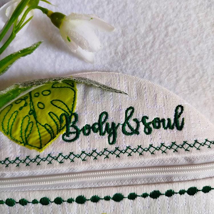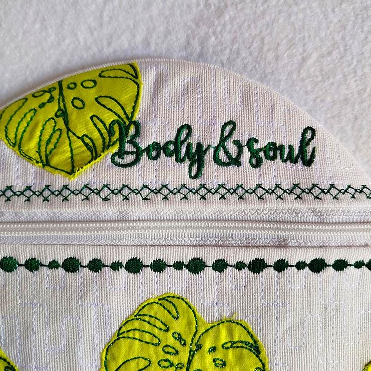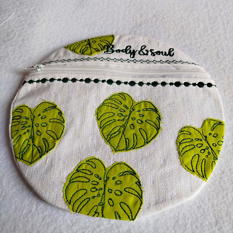 Beautiful fully lined purse with leaves appliques-made in the hoop with a little handsewing inclusion.