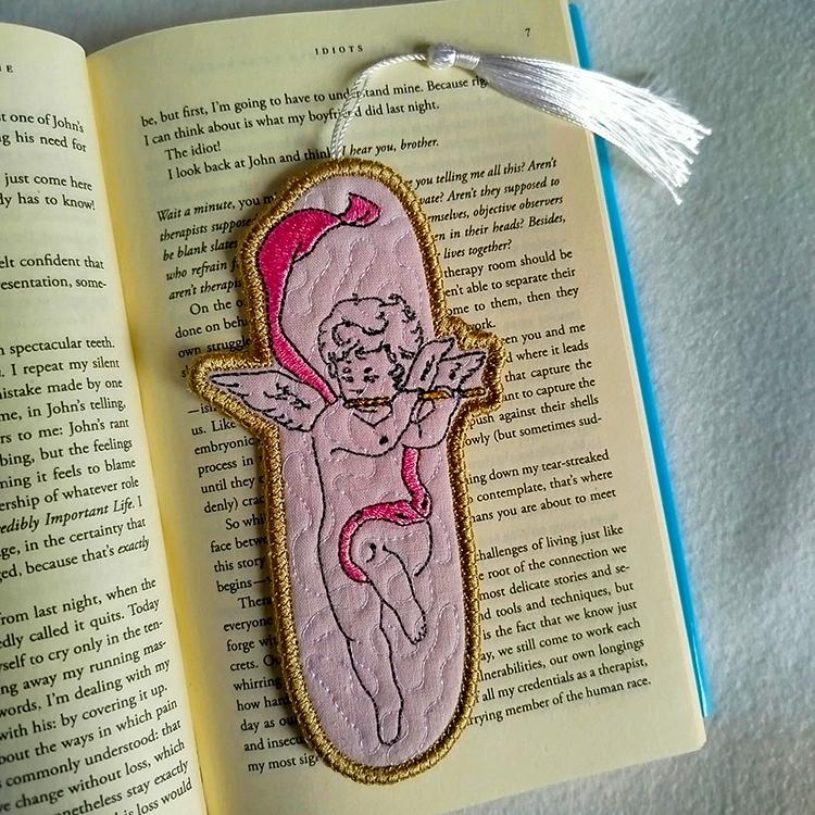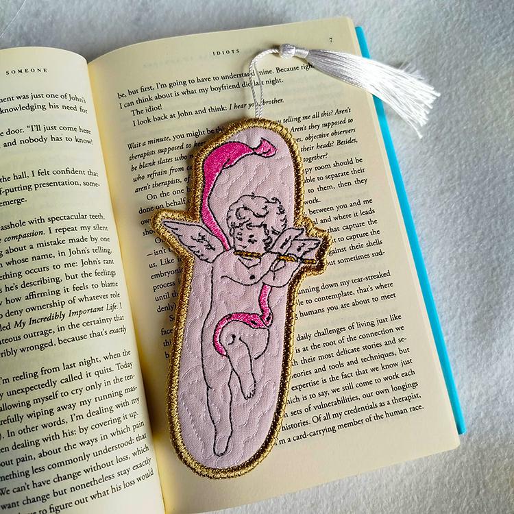 Angelic bookmark that is stitched completely in the hoop.