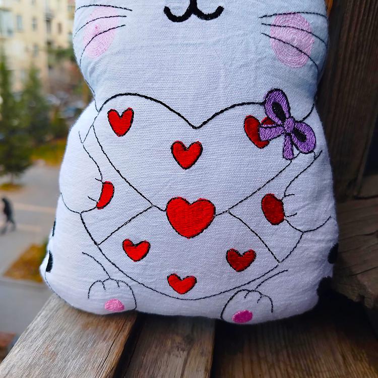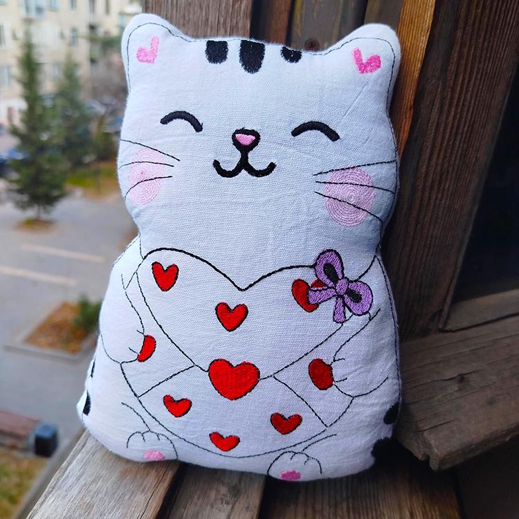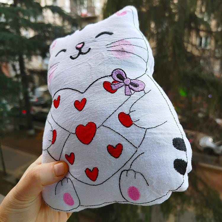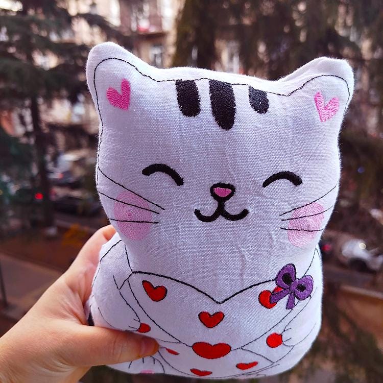 Very cute kitty stuffed toy - stitched in the hoop with a little handsewing inclusion.
