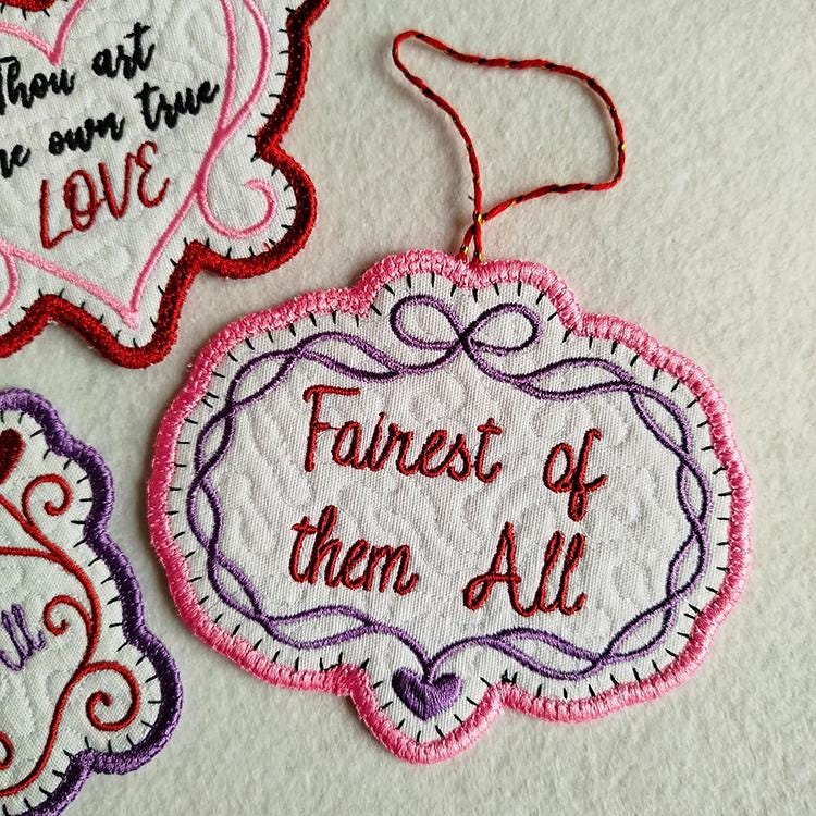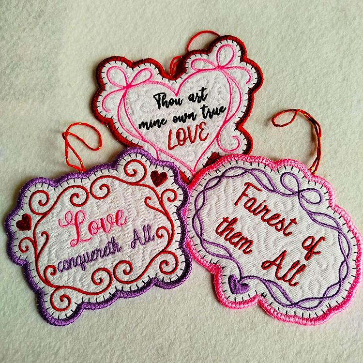 Beautiful and very romantic ornaments those are stitched completely in the hoop.