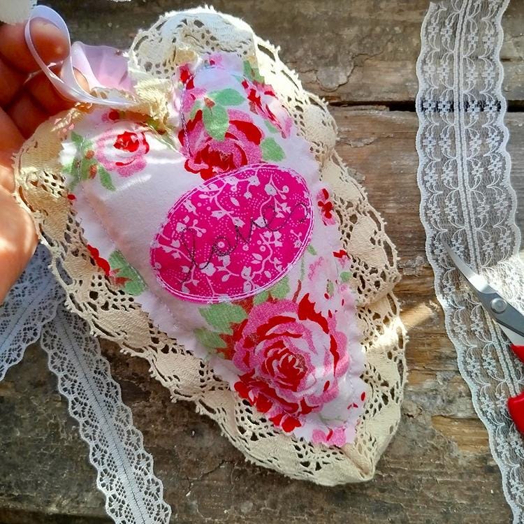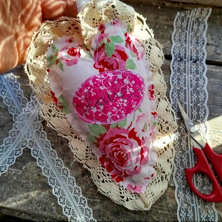 Beautiful heart that is very tender and has many options to make it look your way: laces, fabric of your choice.