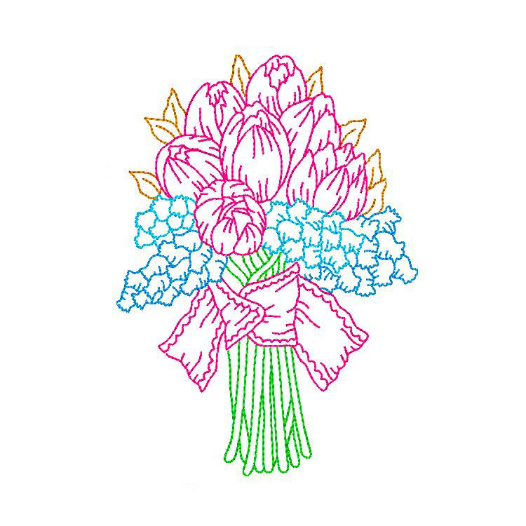 This floral set includes 8 designs those stitch fast and with a very few color changes.