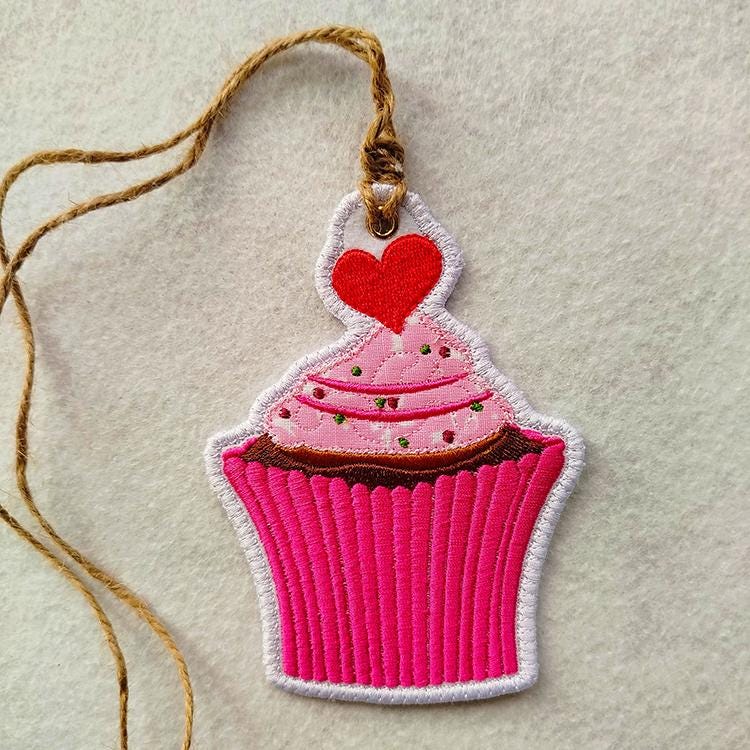 Sweet cupcake ornament with the applique detail - made completely in the hoop.