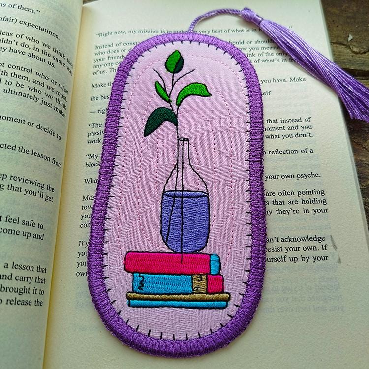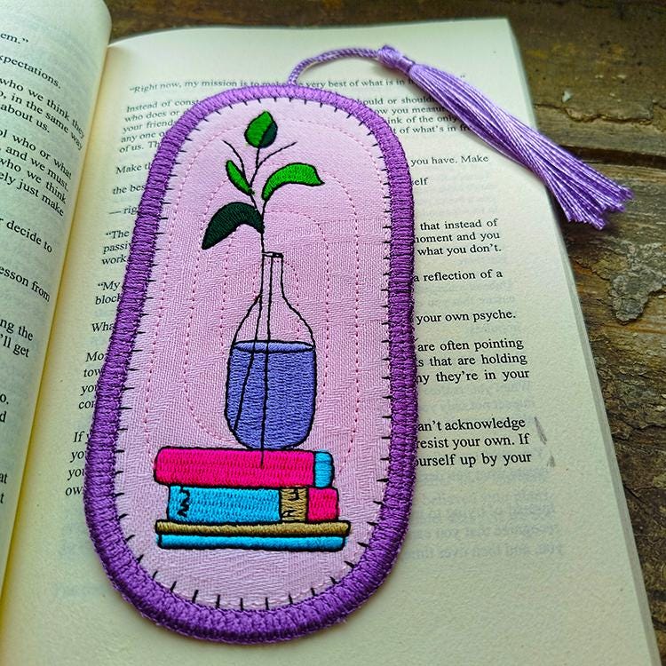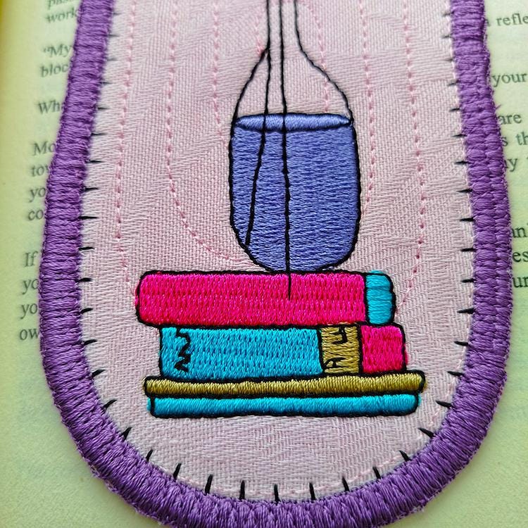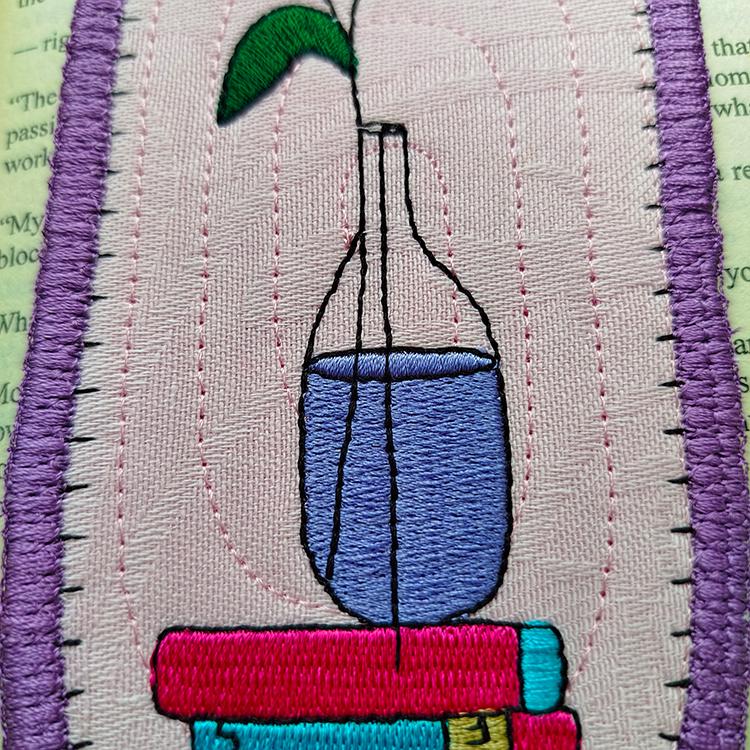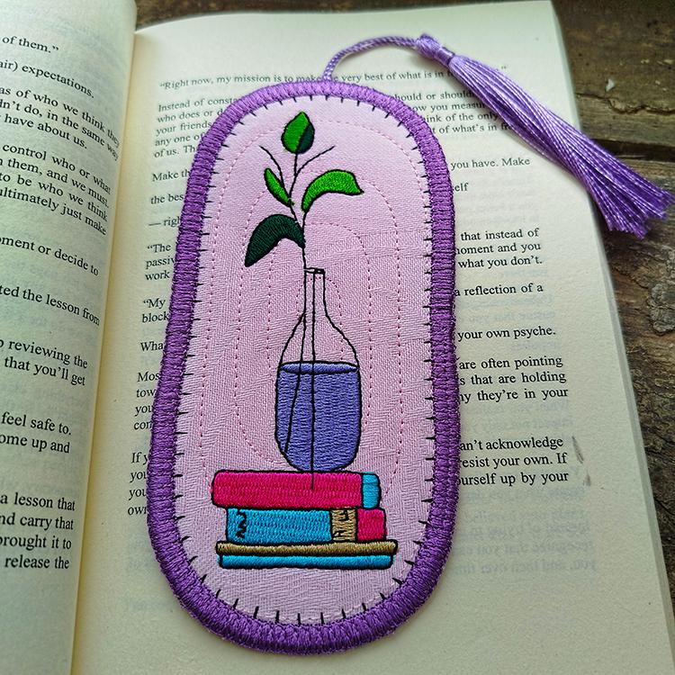 Cozy bookmark that is easy stitch and made completely in the hoop.