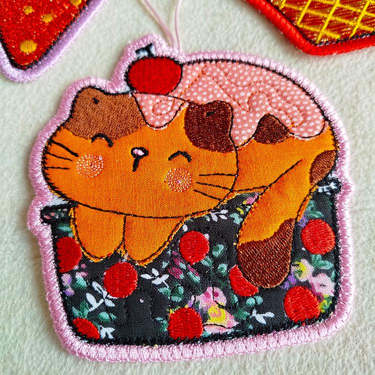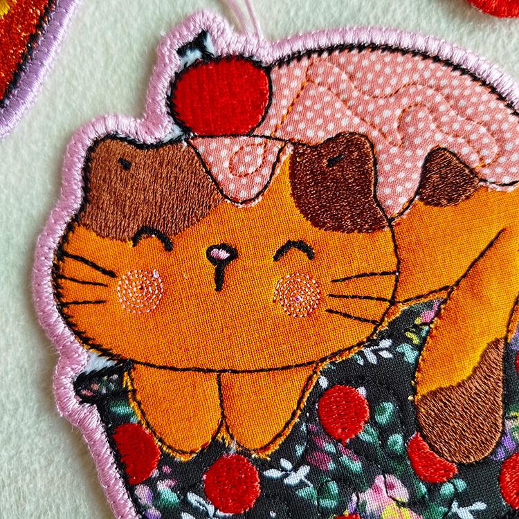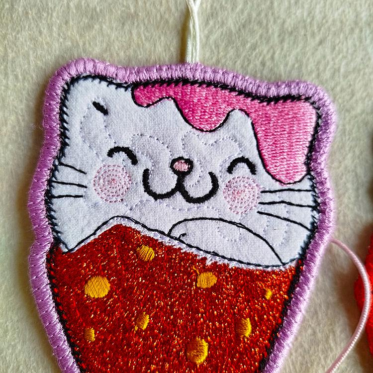Very cute Kawaii kitties ornaments those are made completely in the hoop.