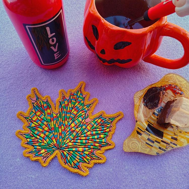 This coaster is made completely in the hoop and takes only seven steps to make with your embroidery machine.