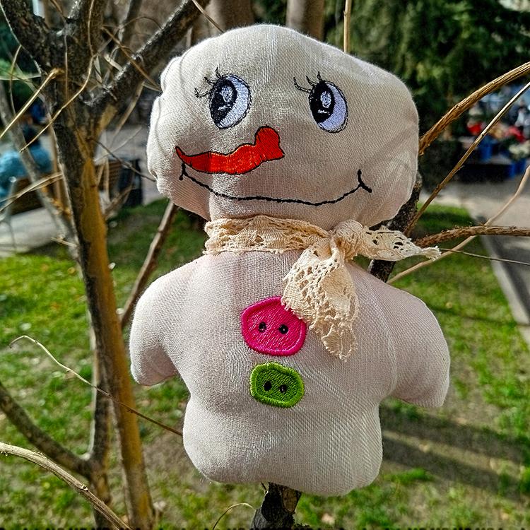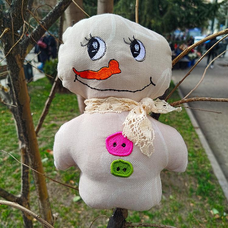 Beautiful and very cute fabric handdrawn snowman that is made in the hoop with a little handsewing inclusion.