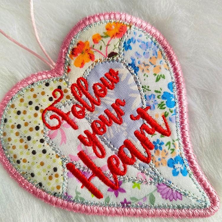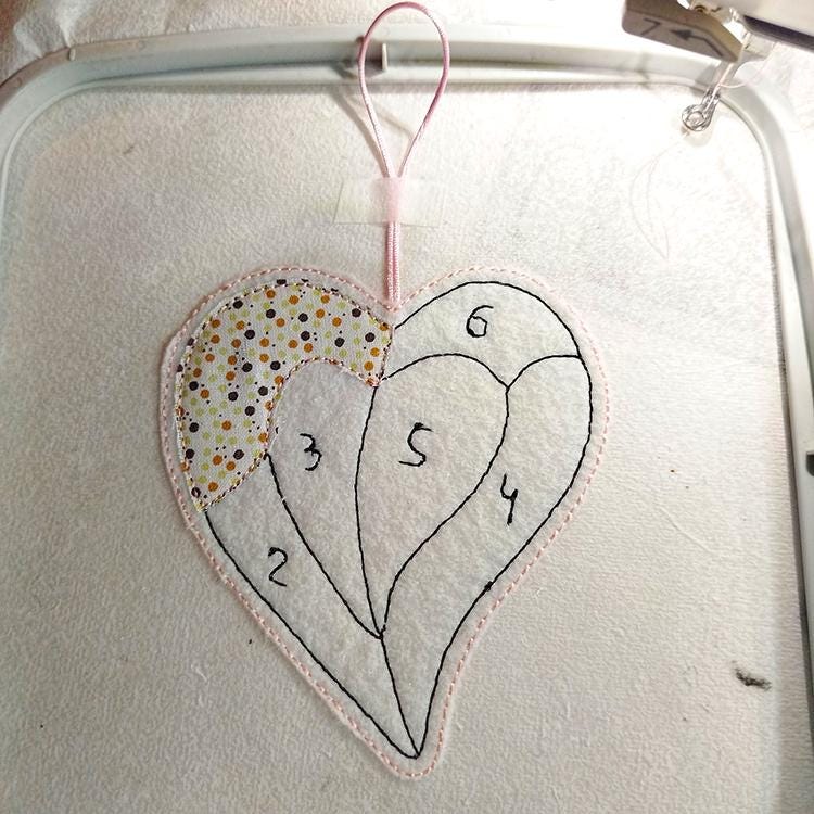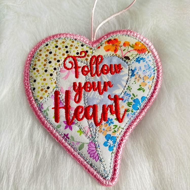 Beautiful heart ornament that is made completely in the hoop.