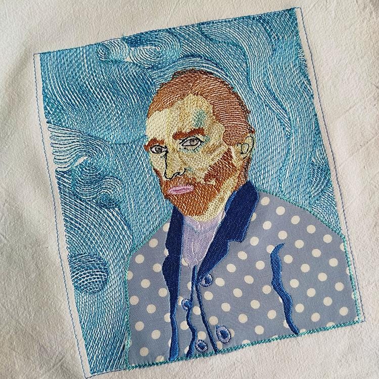 Van Gogh embroidery design that has applique inclusion.