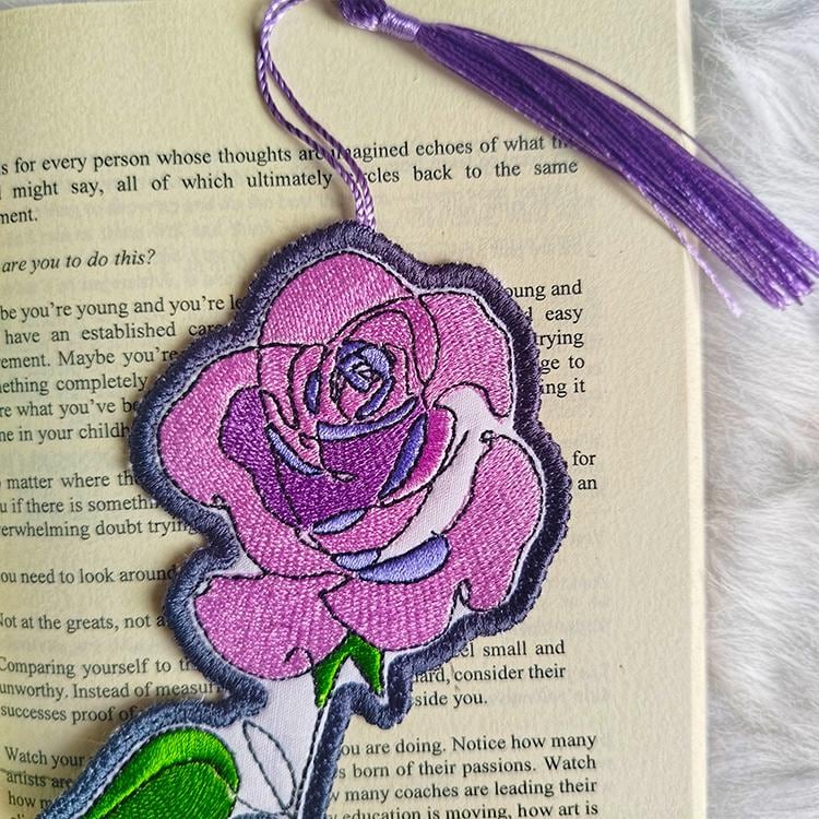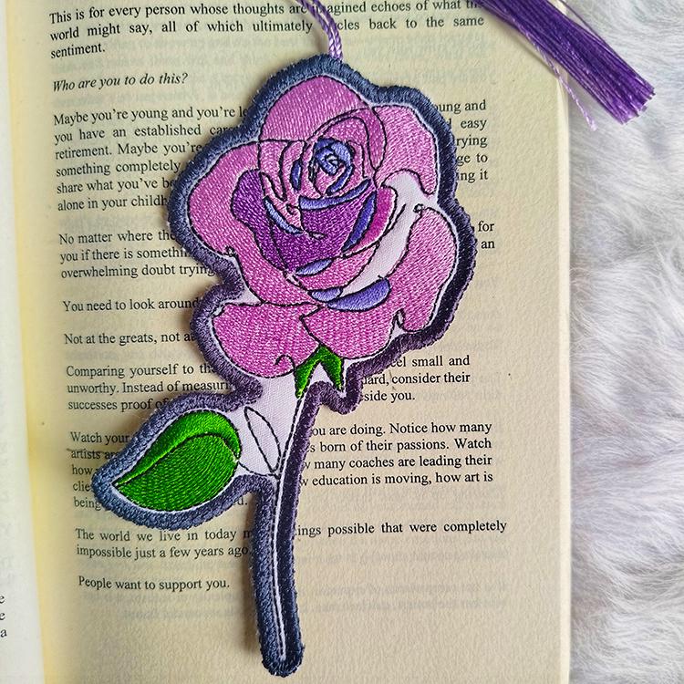 Beautiful rose bookmark that is made completely in the hoop.