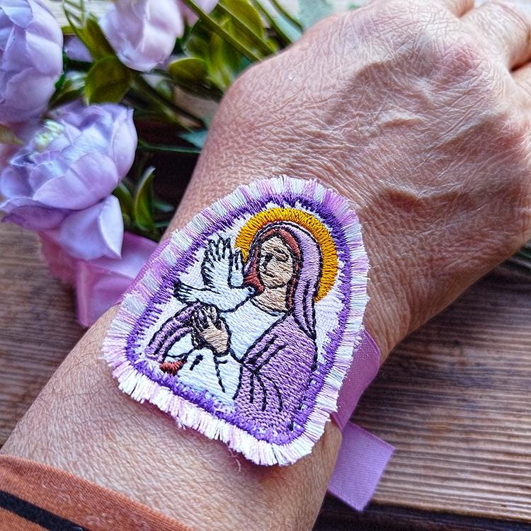 This is the virgin Mary design that will be as a guardian to the owner of the bracelet and dove in her hands indicates