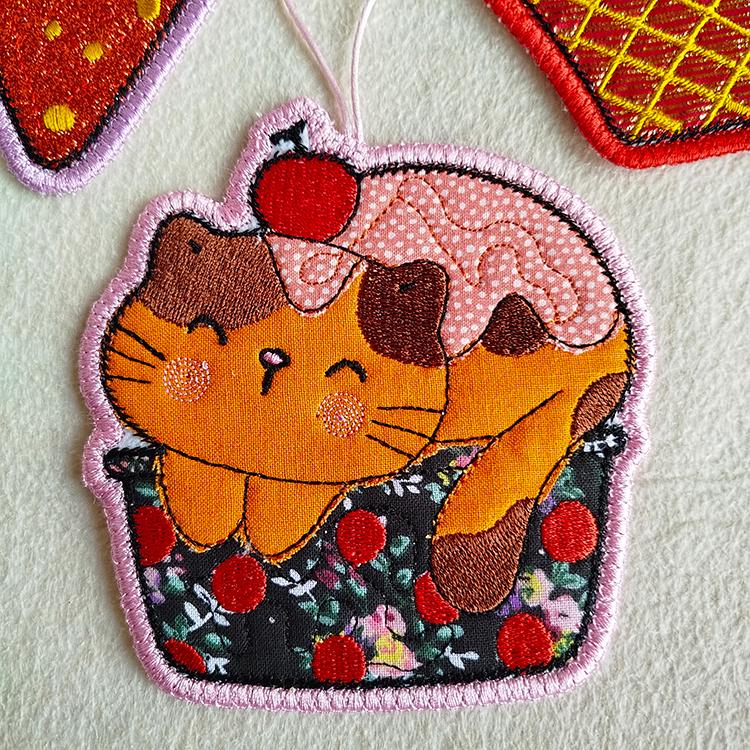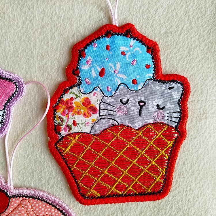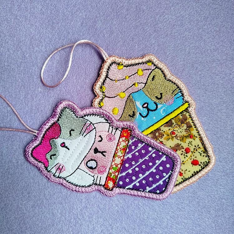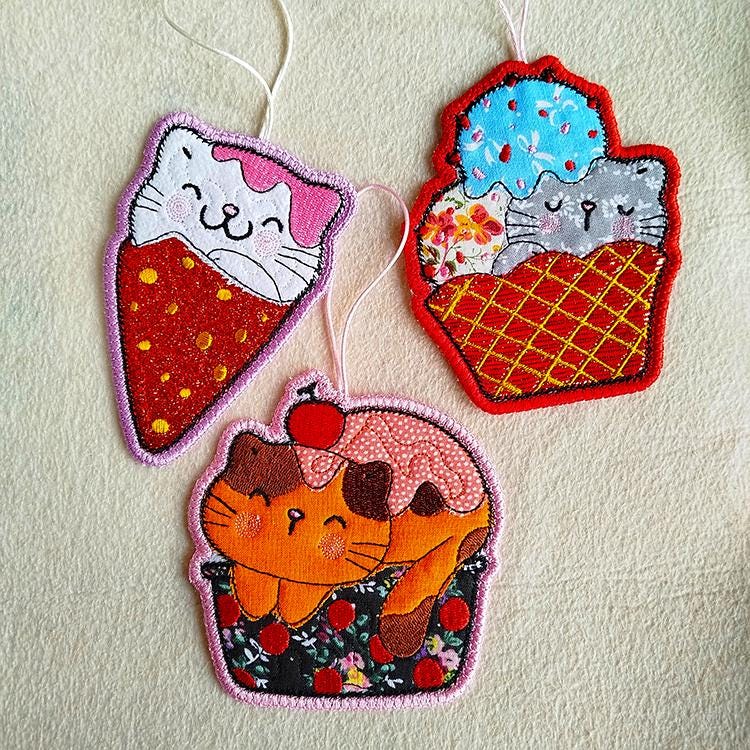 Very cute kitties ornaments done completely in the hoop.