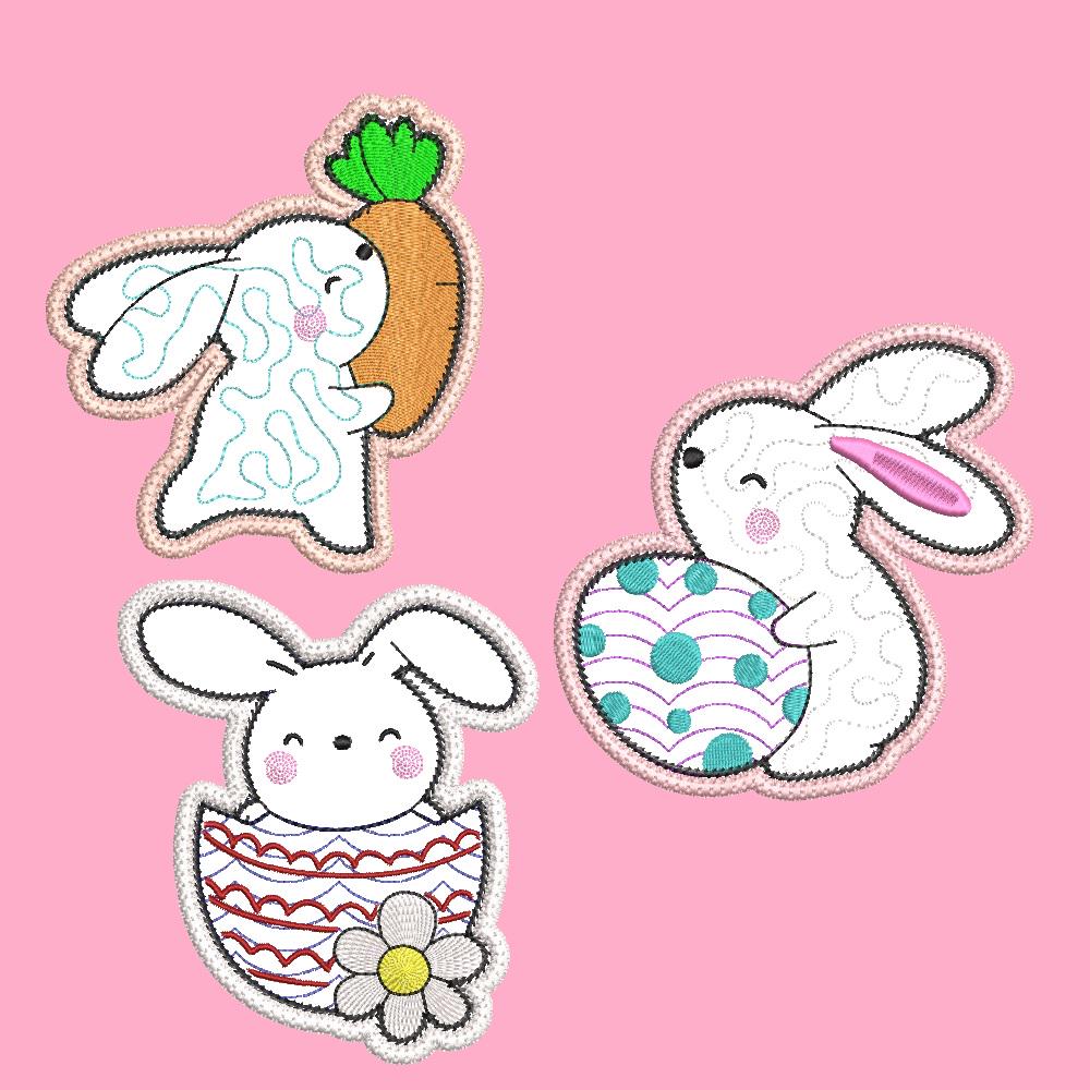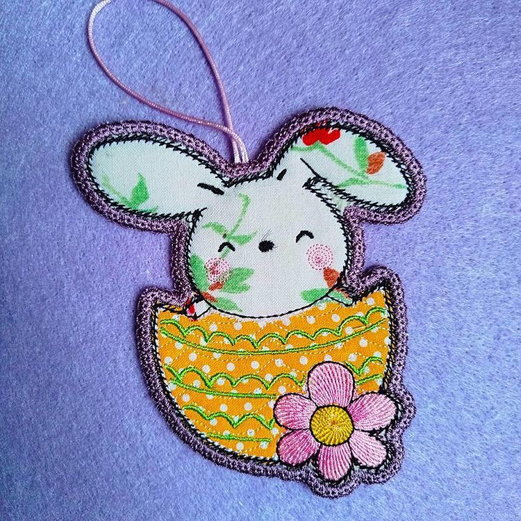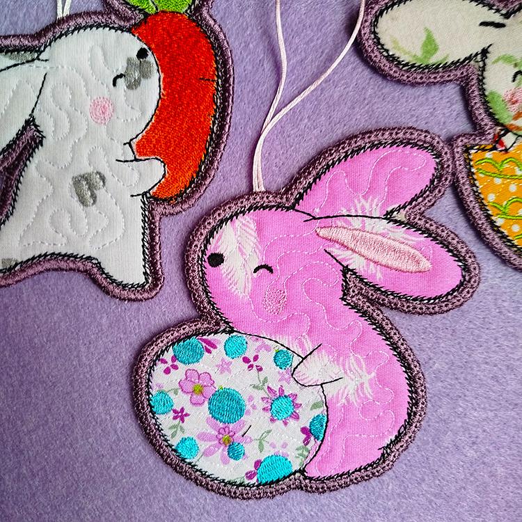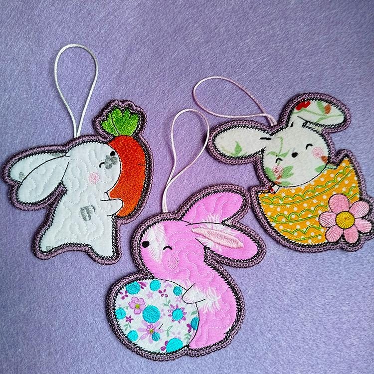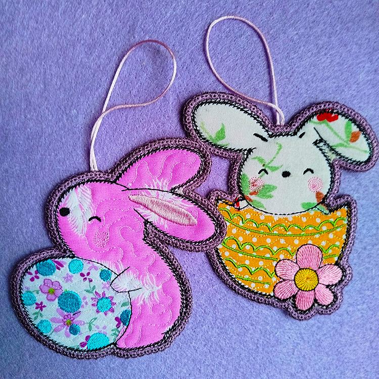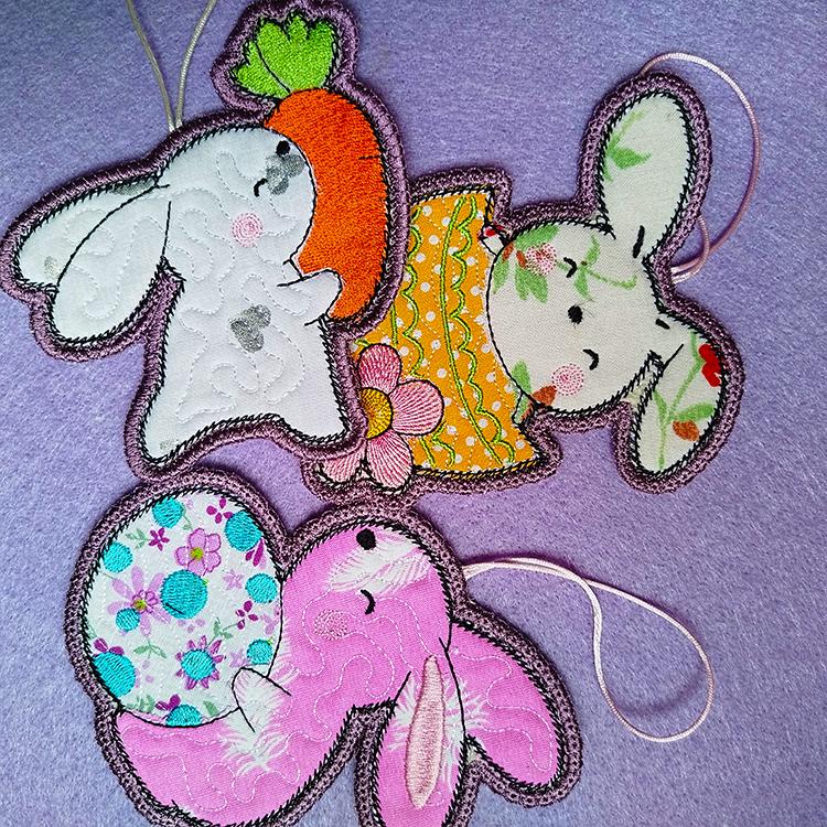 Very cute bunnies ornaments that are stitched completely in the hoop.