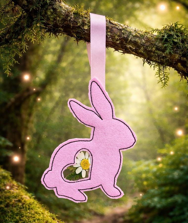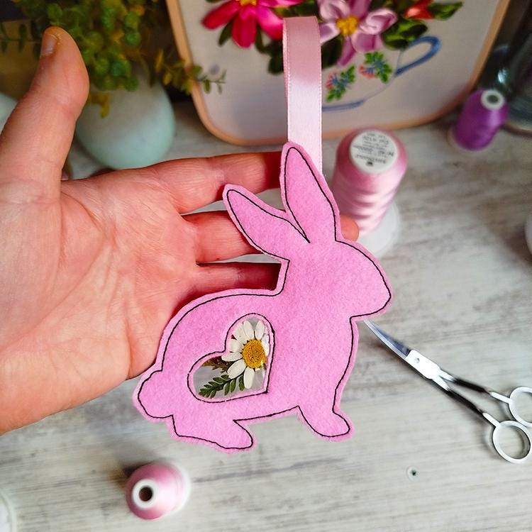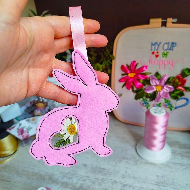Very cute felt bunny project that requires PVC clear and dry flowers. This bunny is stitched completely in the hoop.