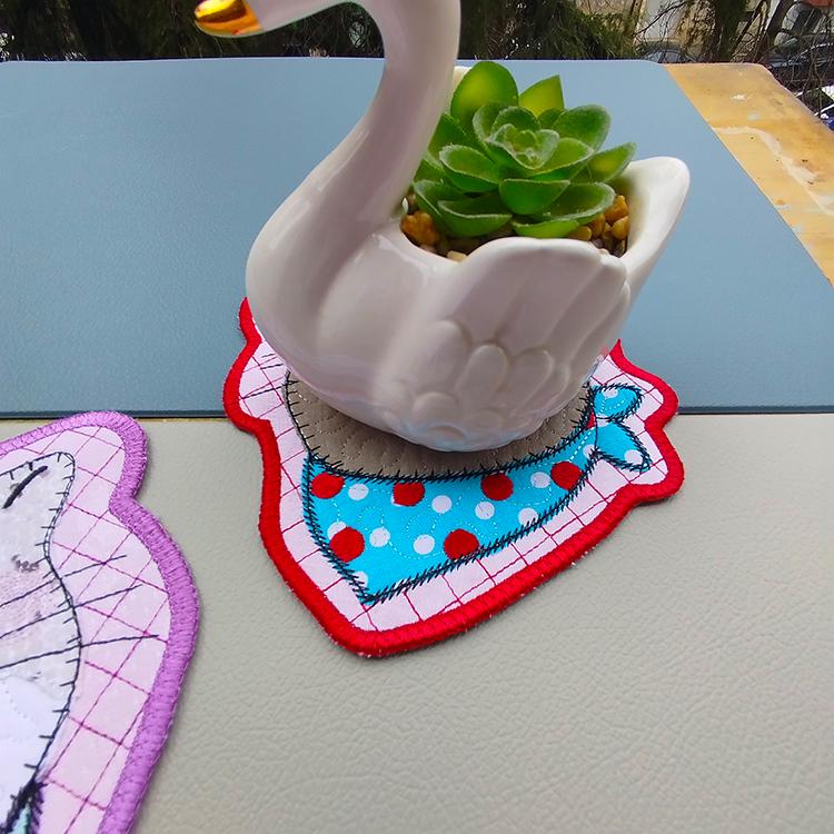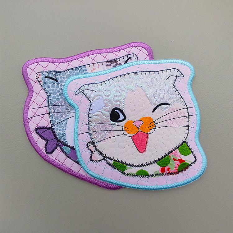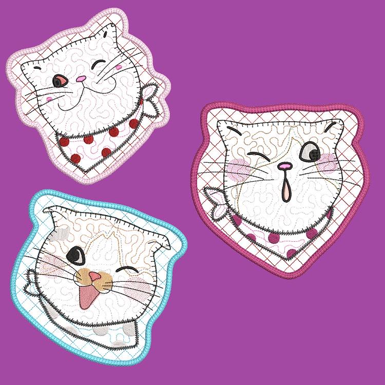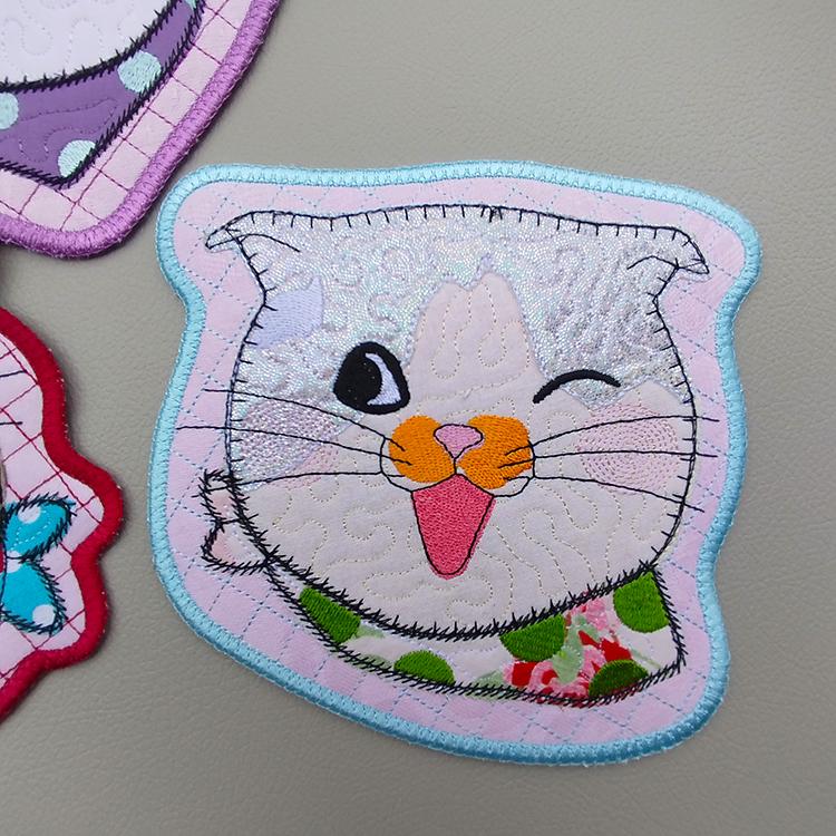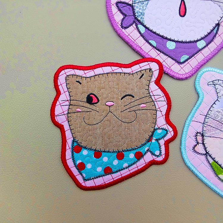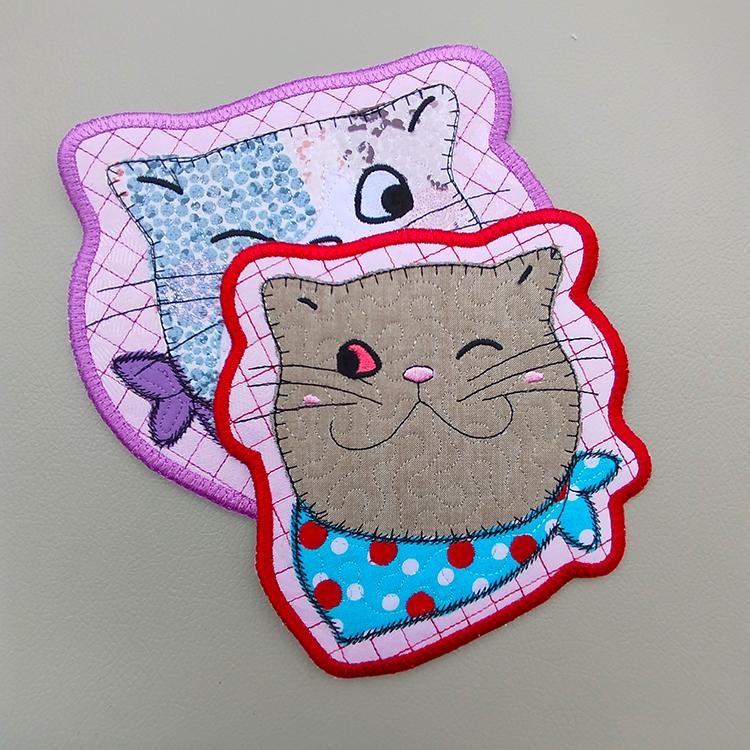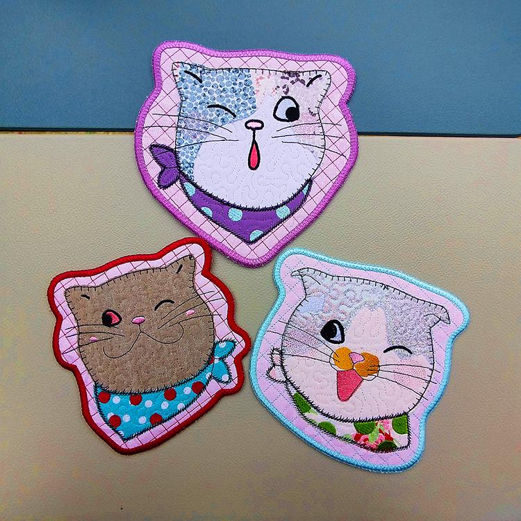 Very cute funny faces of kitties coasters - stitched completely in the hoop.