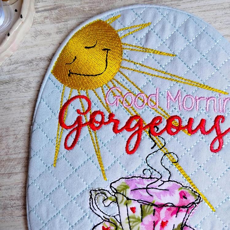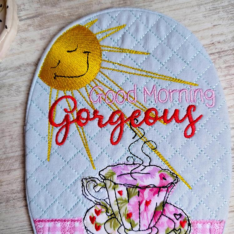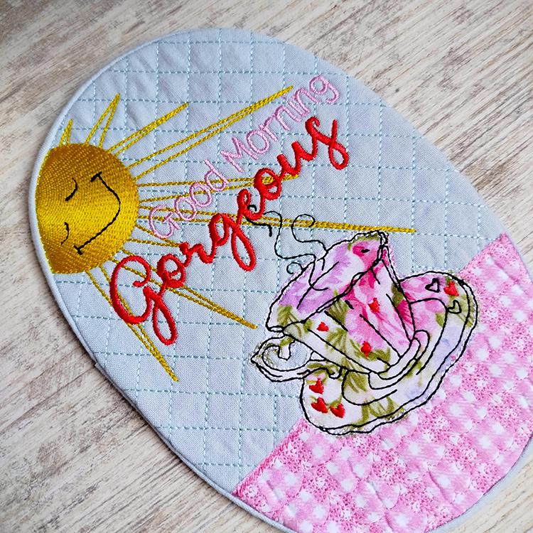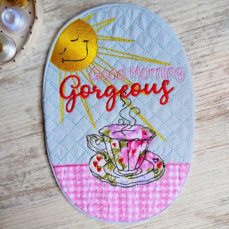 Beautiful mugrug that is stitched completely in the hoop.