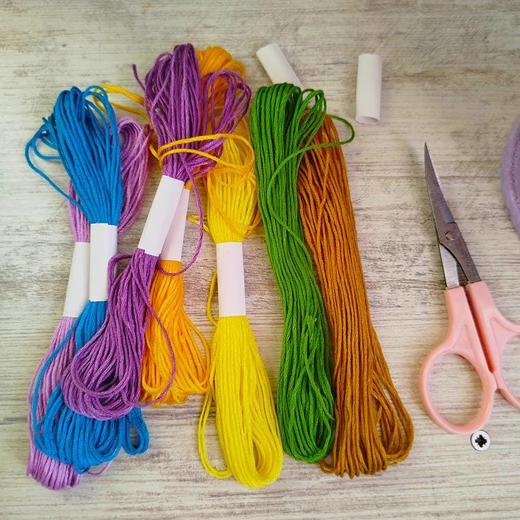 This project is fun to make and all is described in the instructions. Just treat your floss as if its a fabric and make appliques out of it.