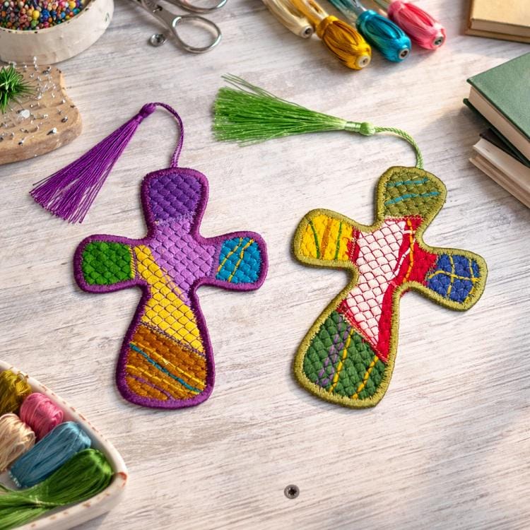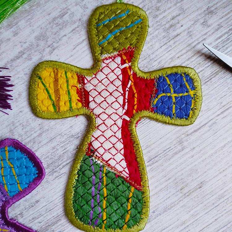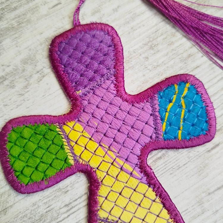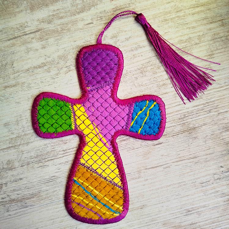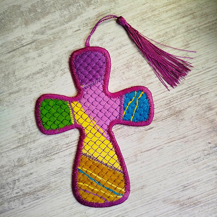 Make your own kinda fabric out of floss - hand embroidery thread and stitch cross bookmark - all made completely in the hoop with the single hooping.