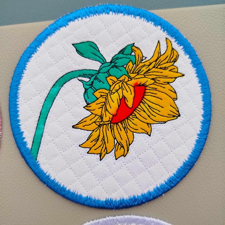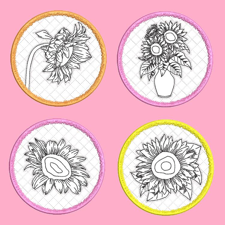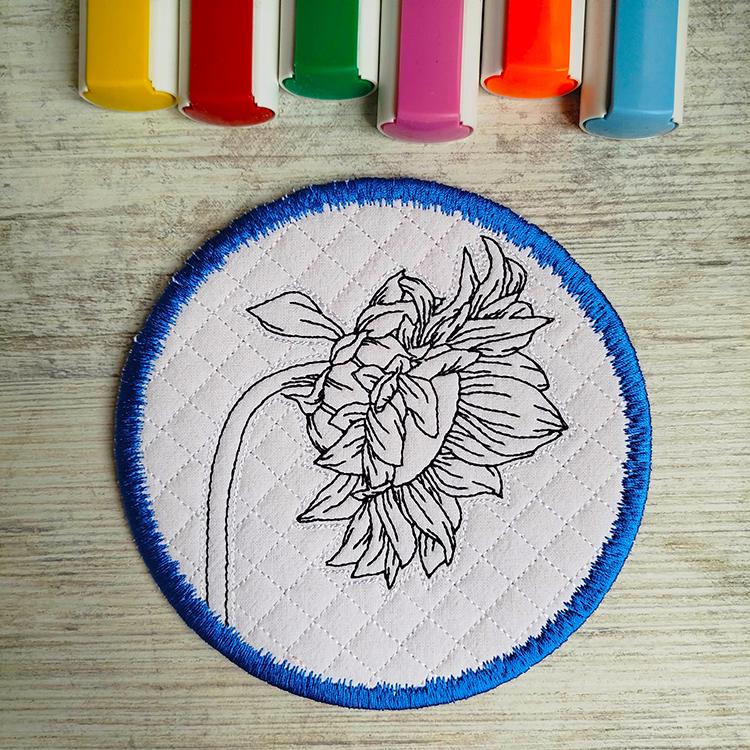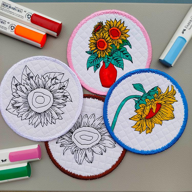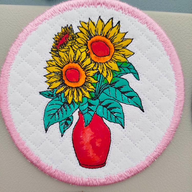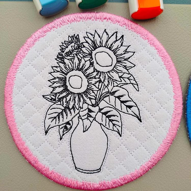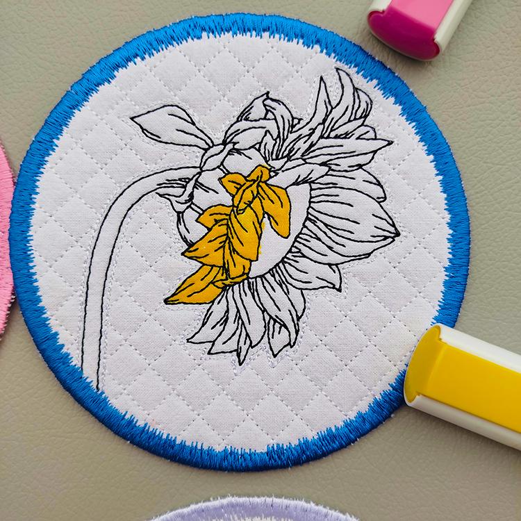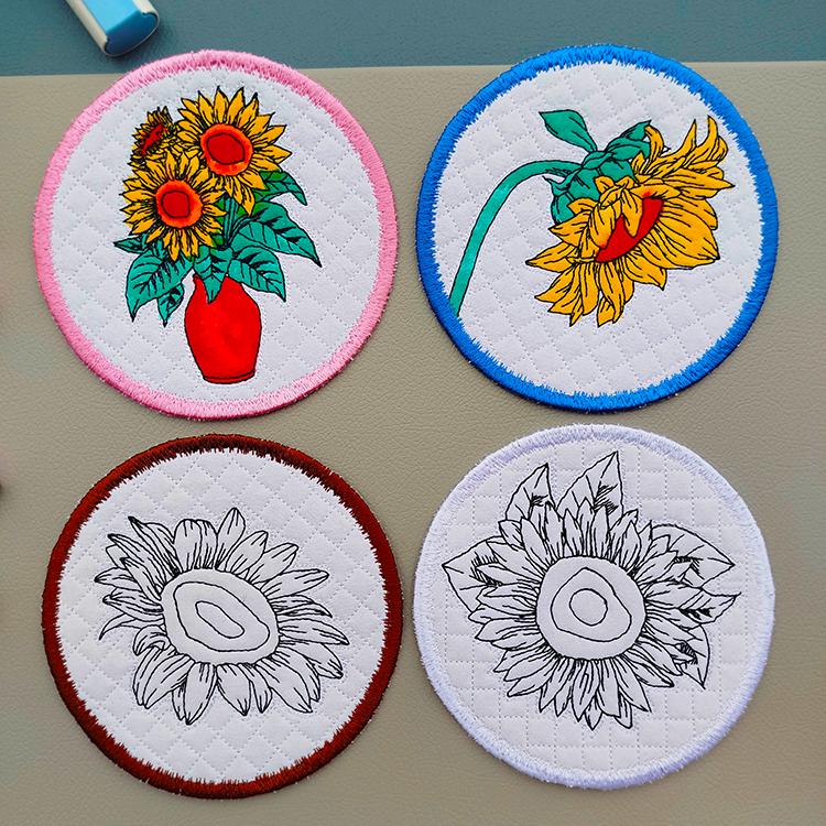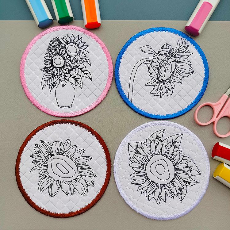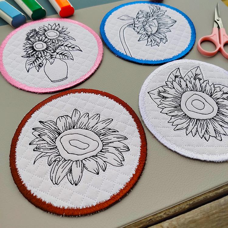 These sunflower coasters are stitched completely in the hoop.
