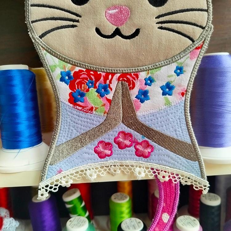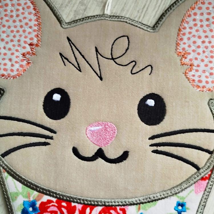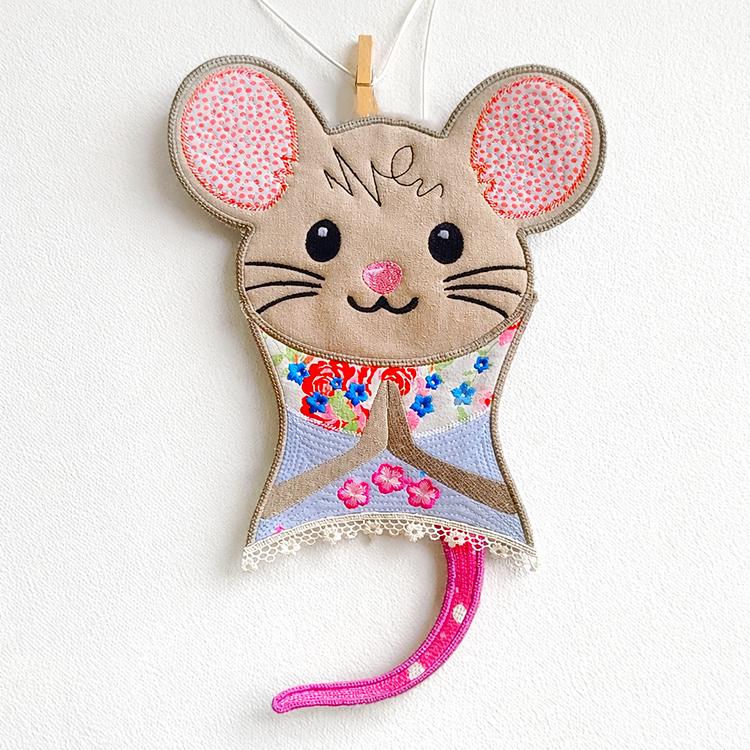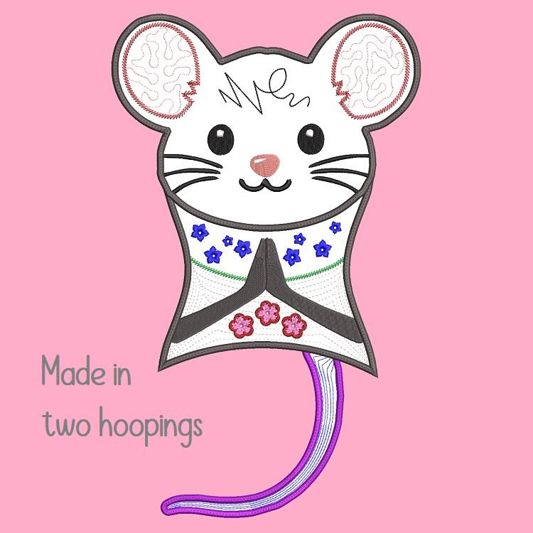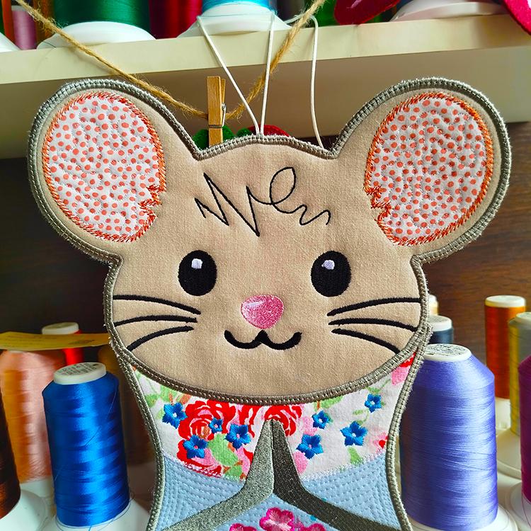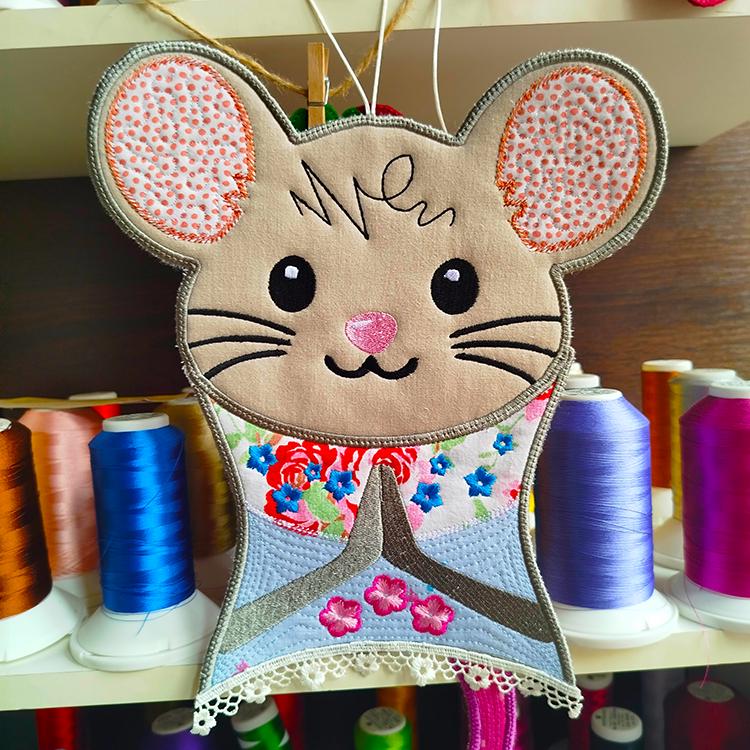 Big Shirley mouse that is stitched in two hoopings and completely in the hoop.