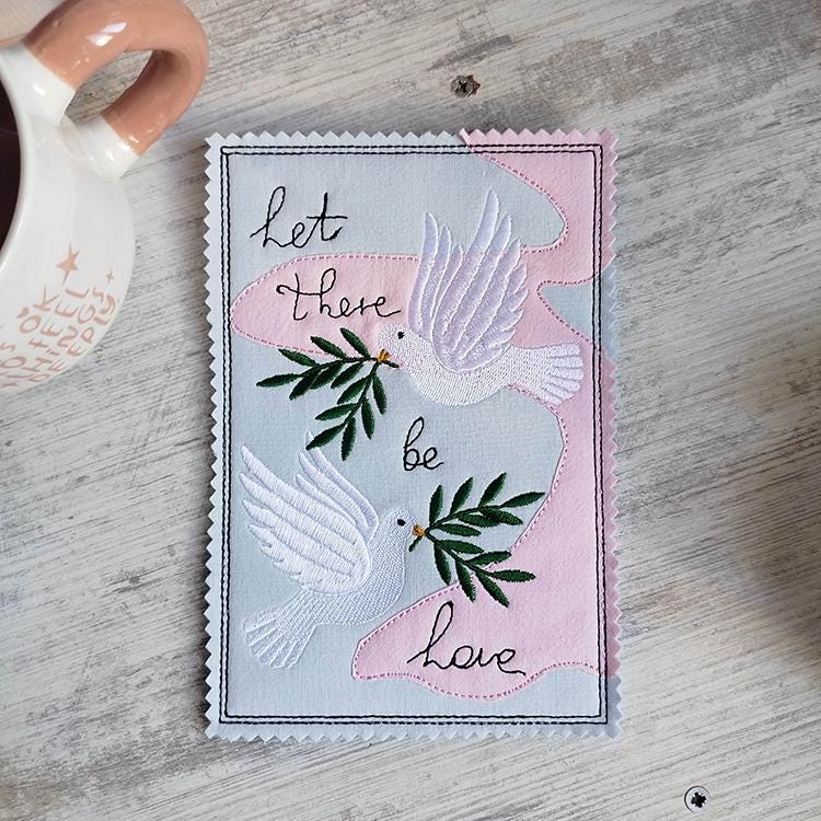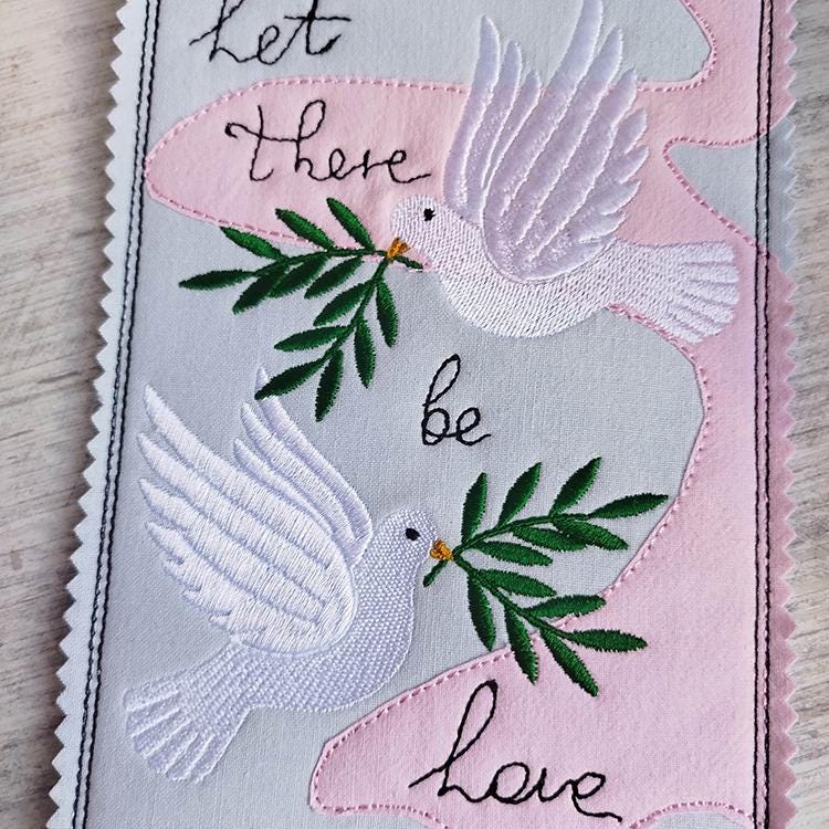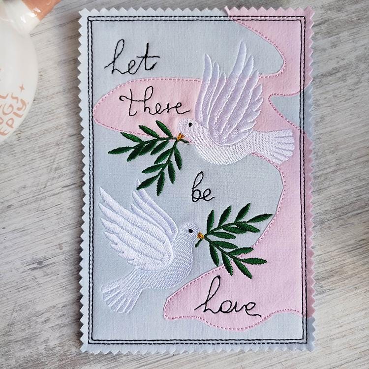 Beautiful doves card that is stitched completely in the hoop.