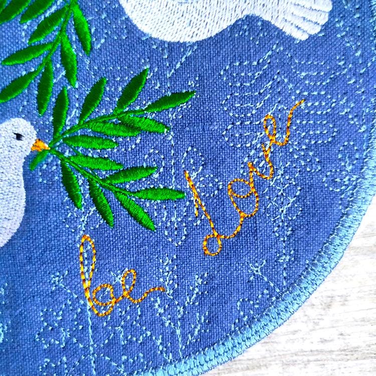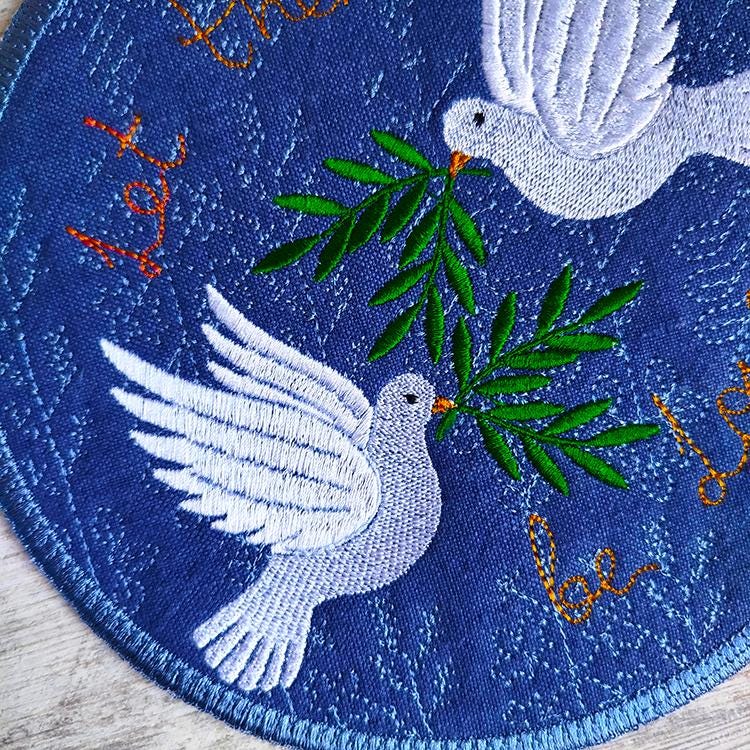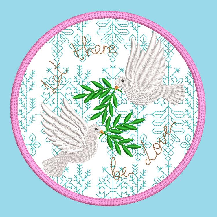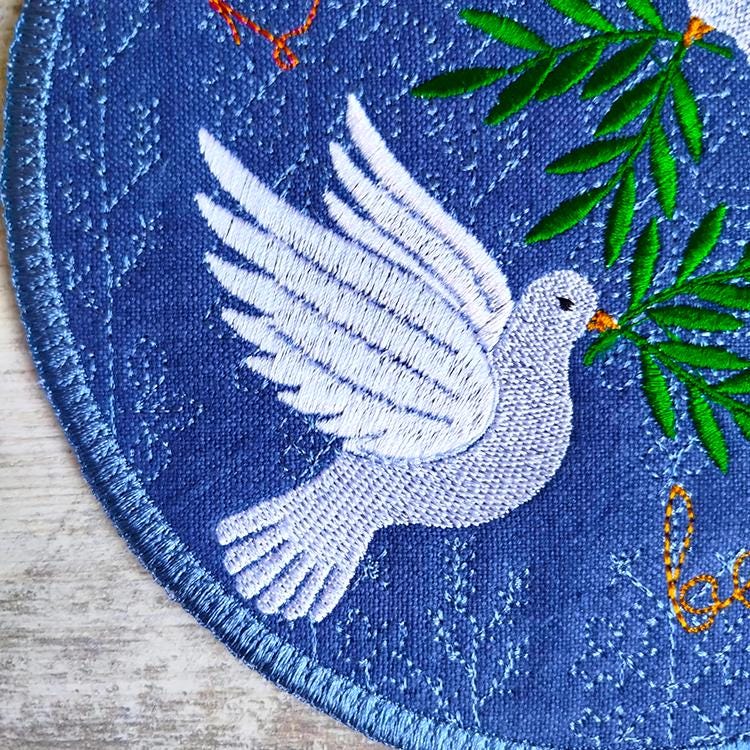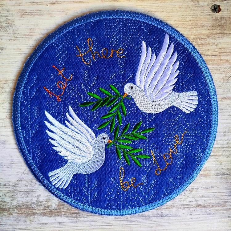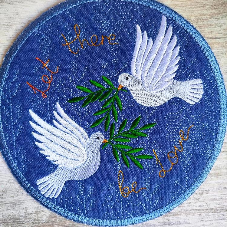 Peaceful doves coaster about love that is stitched completely in the hoop.