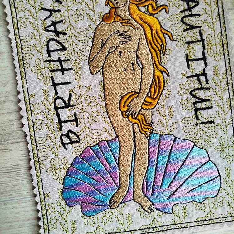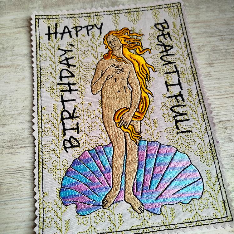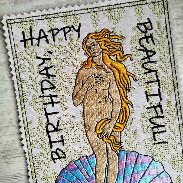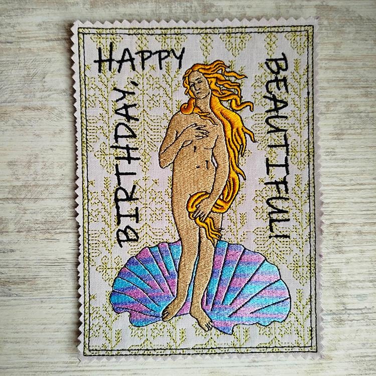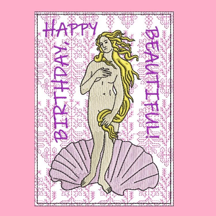 This card design is inspired by S. Boticellis painting of Aphrodite. Aphrodite is goddess of love, beauty, pleasure and procreation.